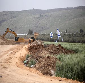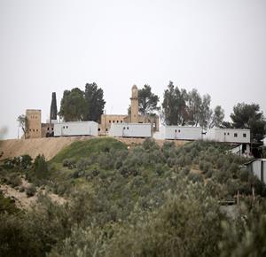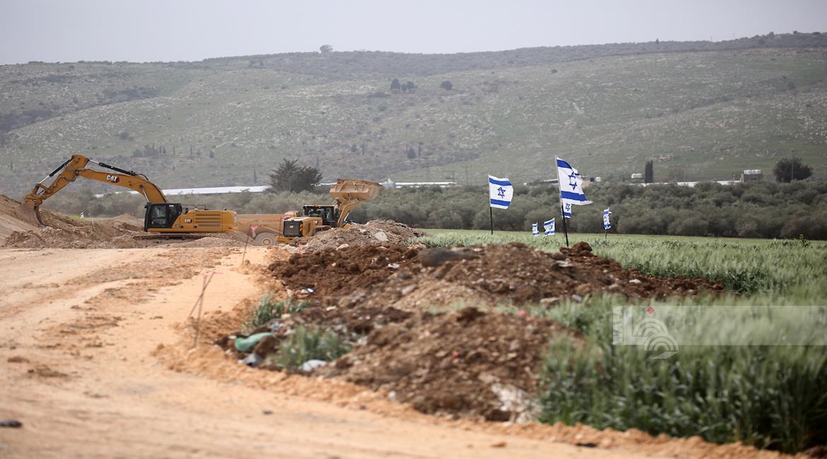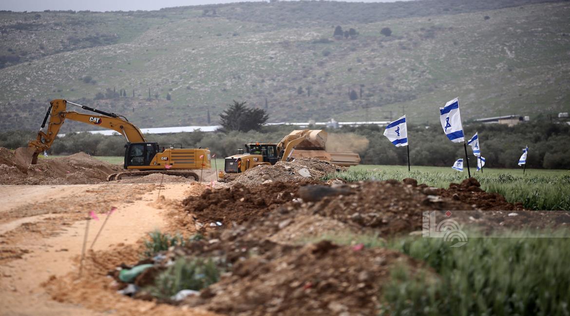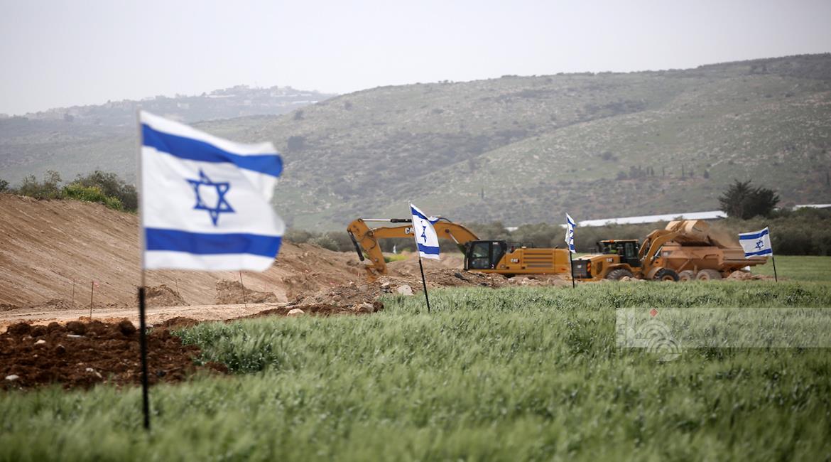 نابلس - مستعمرون يقيمون منازل متنقلة ويرفعون الأعلام الإسرائيلية في مستعمرة صانور التي تم إخلاؤها عام 2005 شمال نابلس في الضفة الغربية