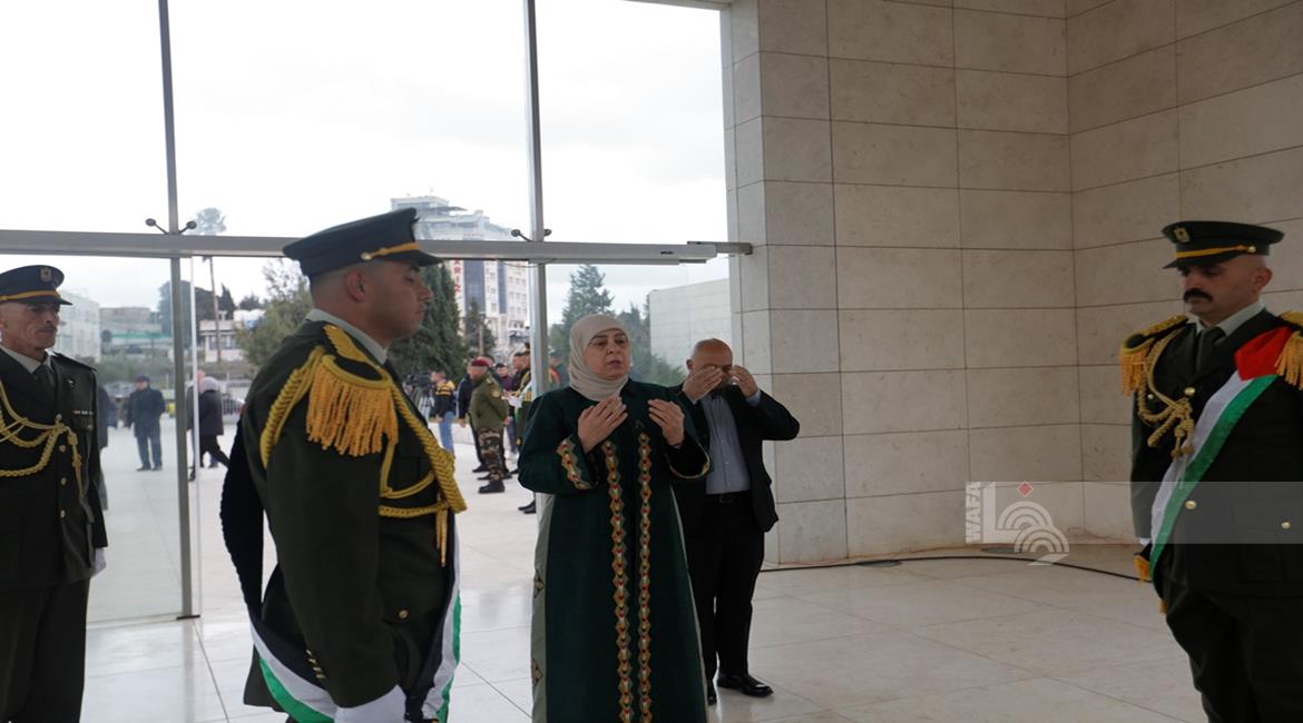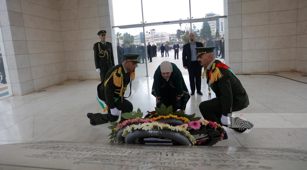 رئيس الوزراء محمد مصطفى واعضاء المجلس الوطني الفلسطيني وشخصيات سياسية واعتبارية يضعون اكاليل الورود على ضريح الرئيس الشهيد ياسر عرفات لمناسبة عيد الفطر السعيد