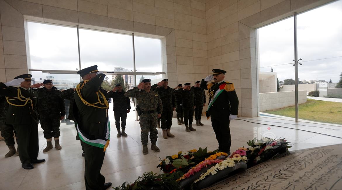 اعضاء من الاجهزة الامنية والشرطة الفلسطينية يضعون اكاليل الورود على ضريح الرئيس الشهيد ياسر عرفات لمناسبة عيد الفطر السعيد
