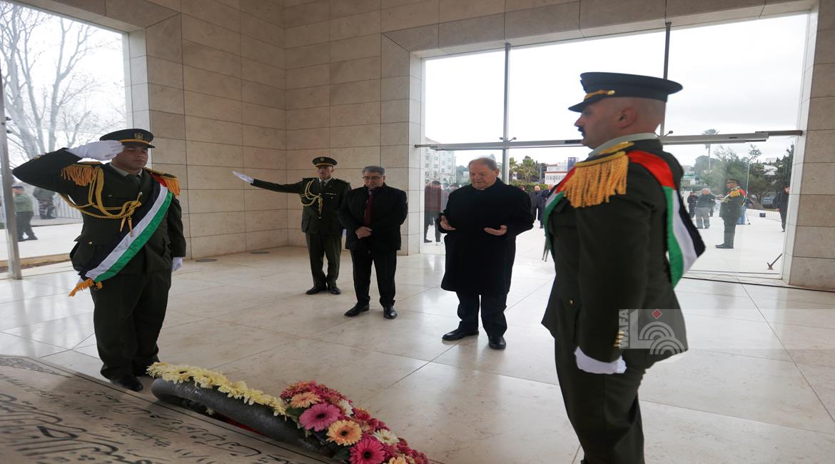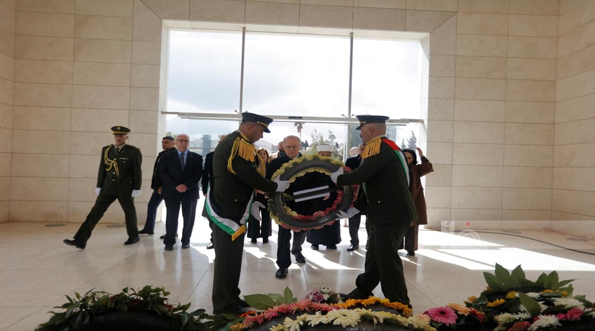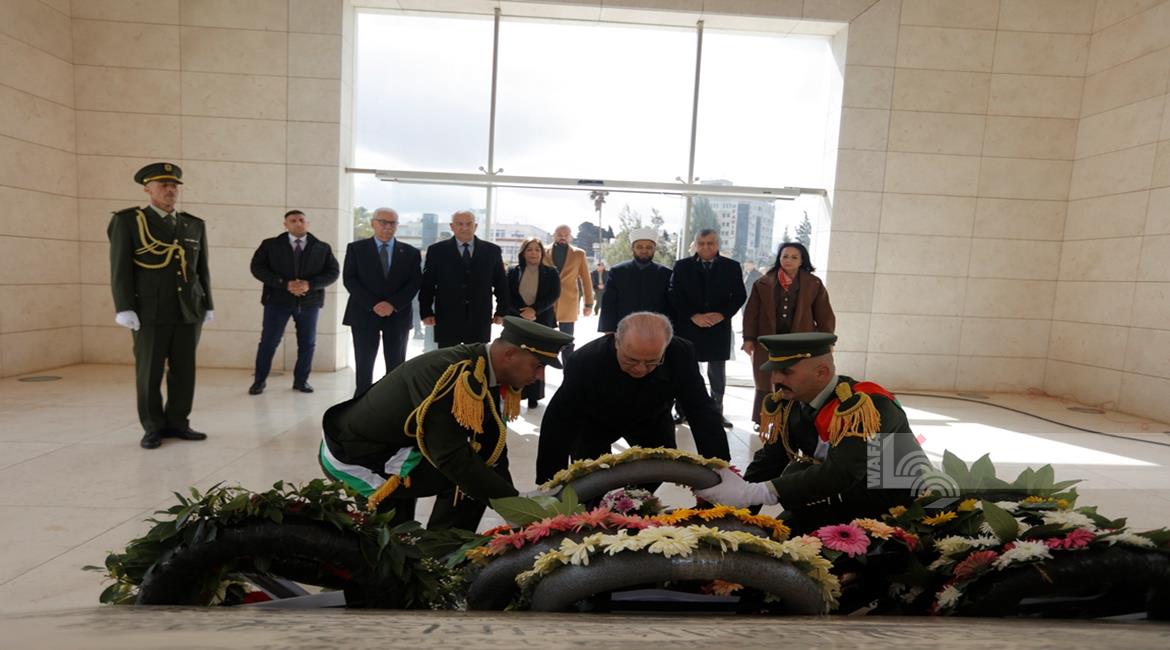 - رئيس الوزراء محمد مصطفى واعضاء المجلس الوطني الفلسطيني وشخصيات سياسية واعتبارية يضعون اكاليل الورود على ضريح الرئيس الشهيد ياسر عرفات لمناسبة عيد الفطر السعيد