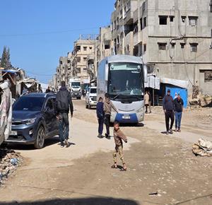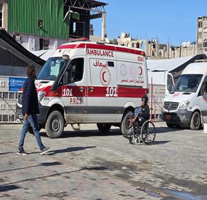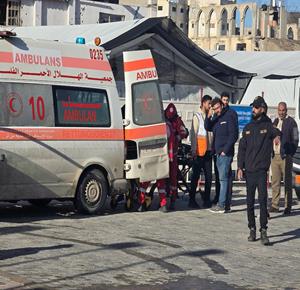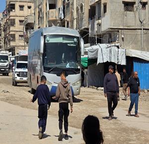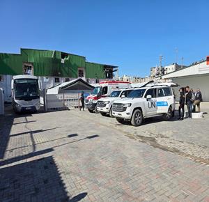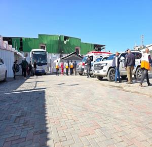 غزة - مجموعة من المرضى والجرحى يغادرون على متن حافلات تابعة للأمم المتحدة، متجهين إلى معبر رفح تمهيدا لنقلهم إلى مصر لتلقي العلاج
