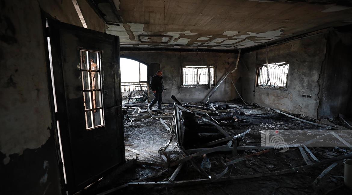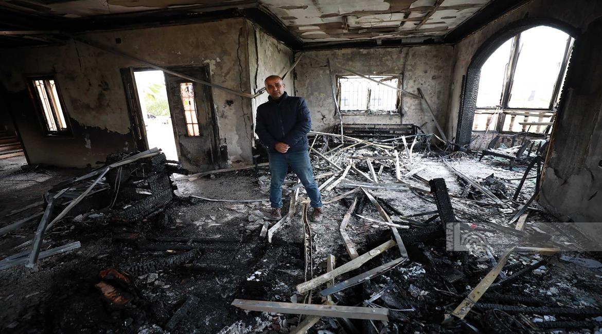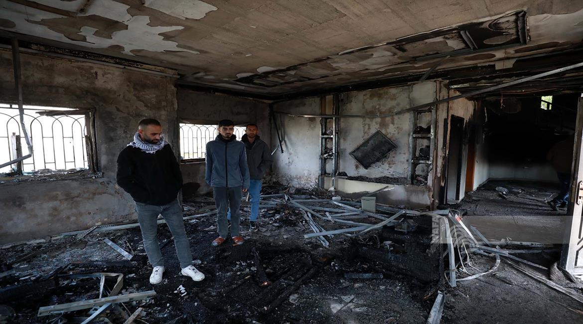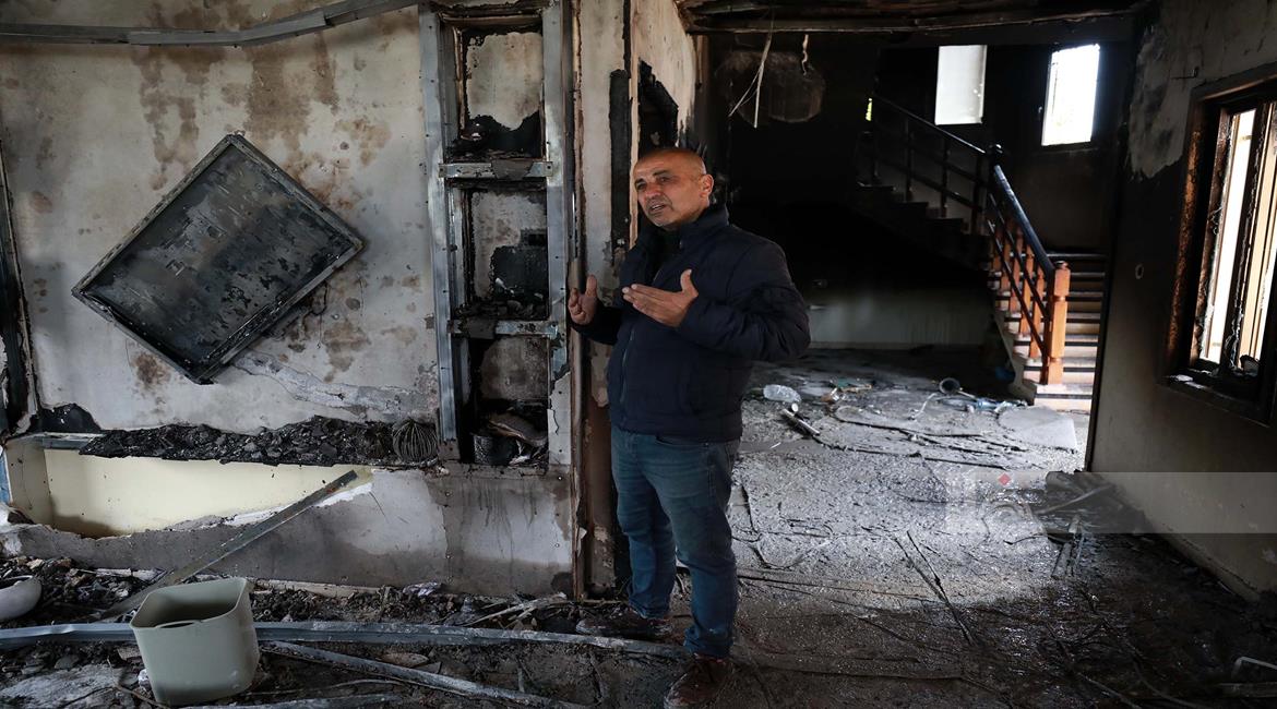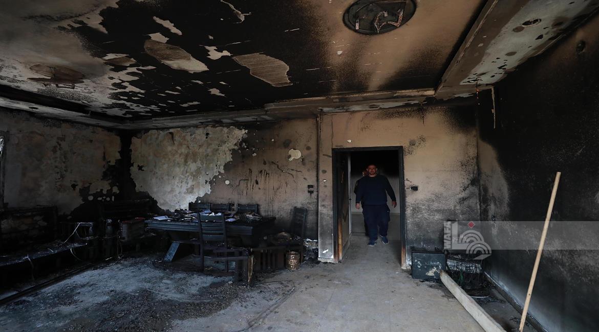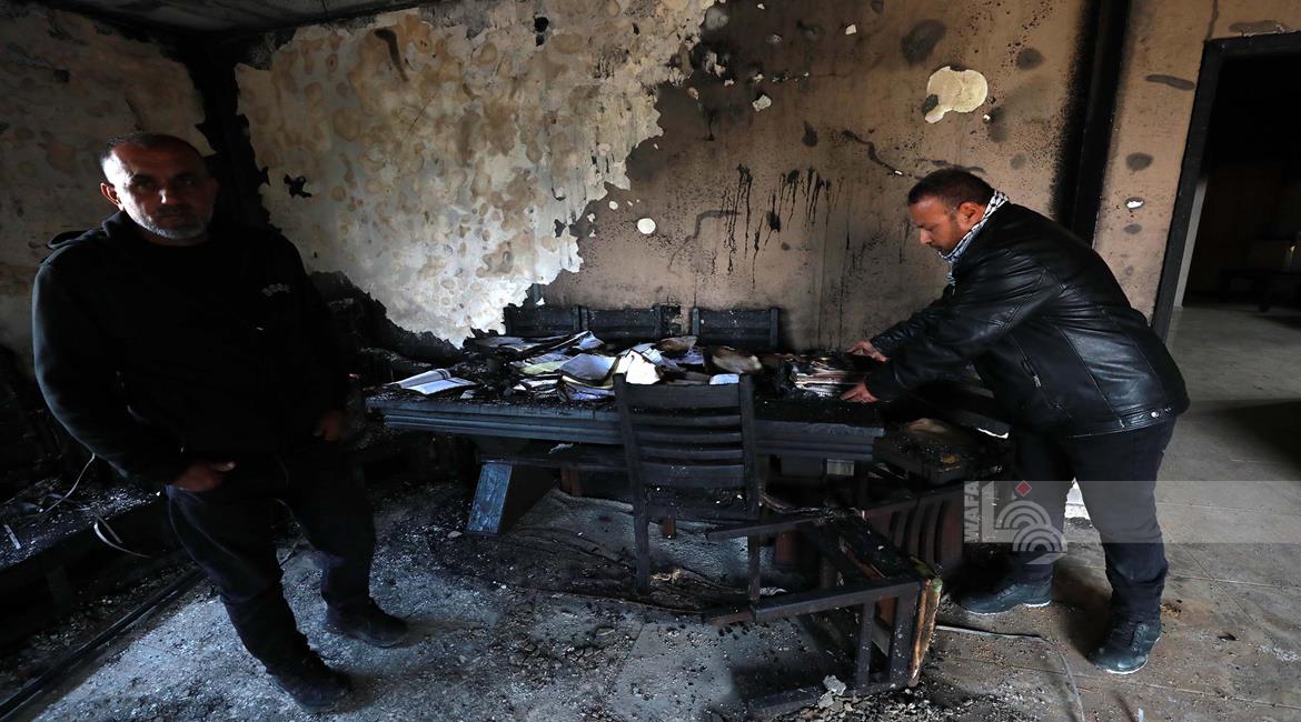 نابلس - مواطنون يتفقدون منازلهم التي أحرقها المستعمرون مساء أمس خلال هجومهم على قرية دير الحطب شرق مدينة نابلس