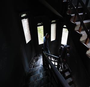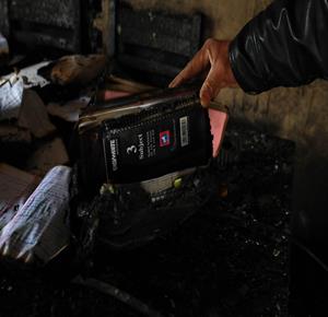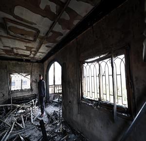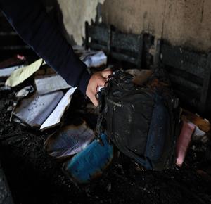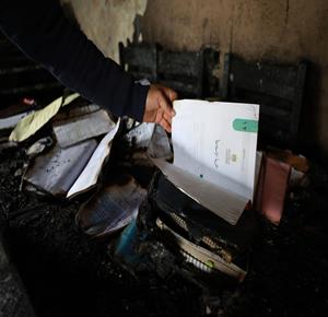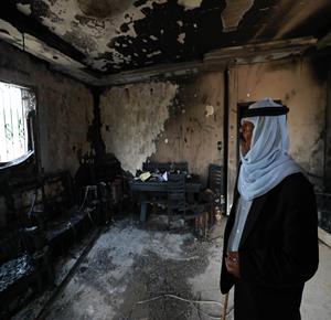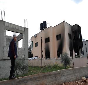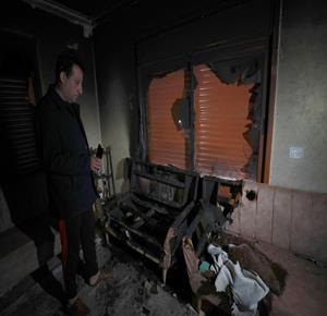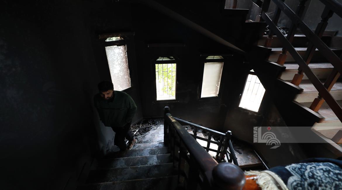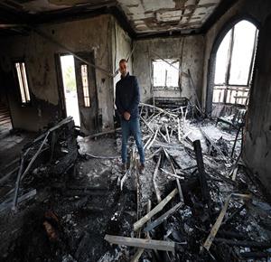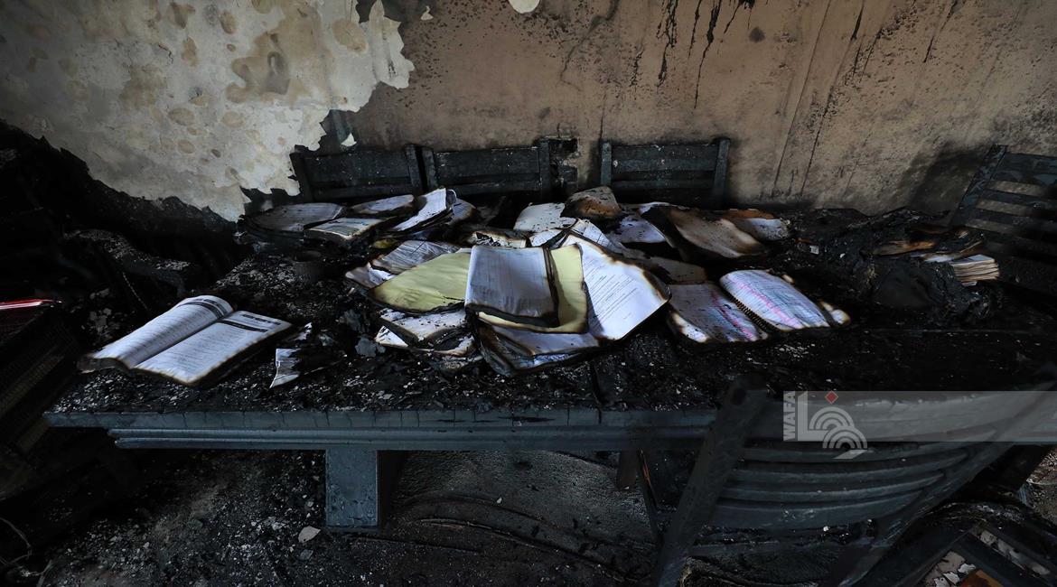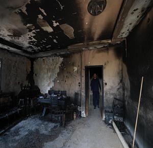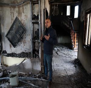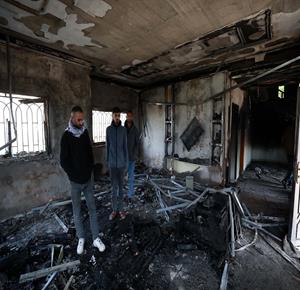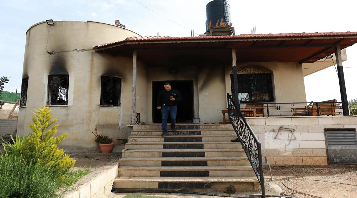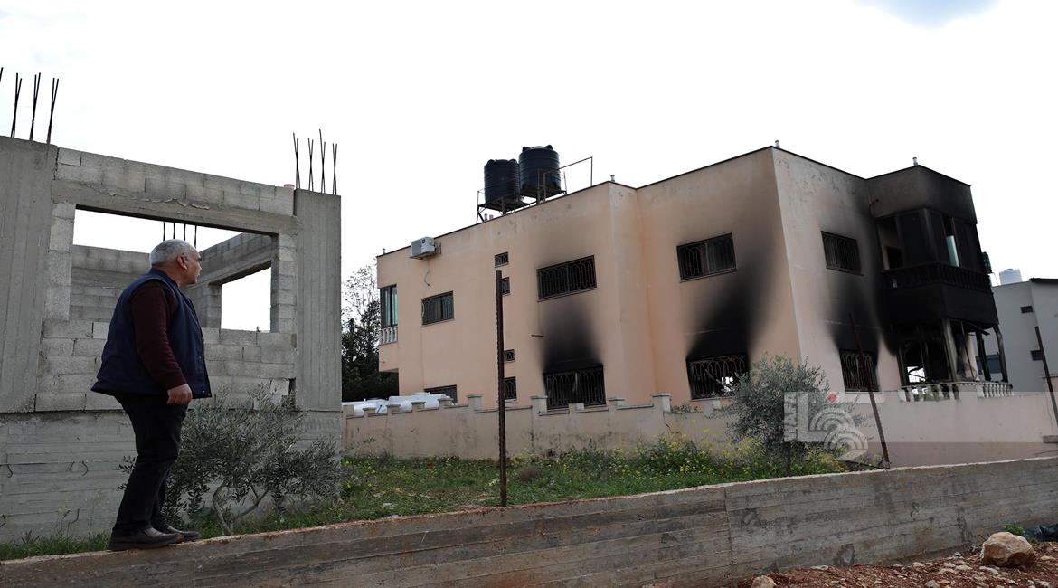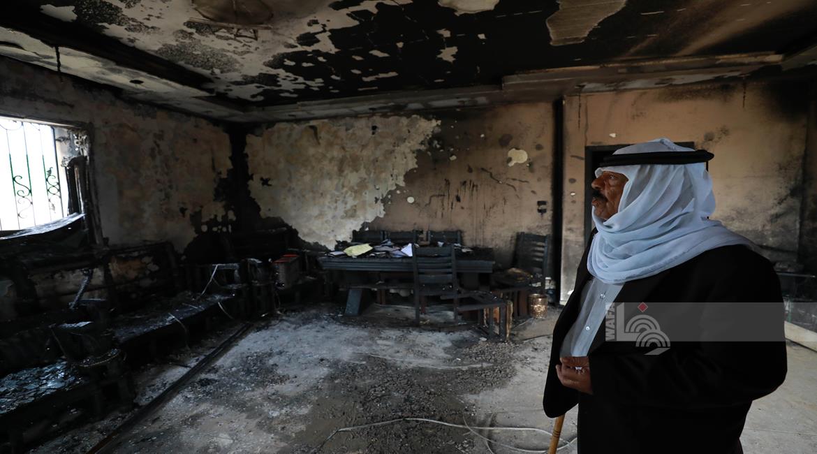 نابلس - مواطنون يتفقدون منازلهم التي أحرقها المستعمرون مساء أمس خلال هجومهم على قرية دير الحطب شرق مدينة نابلس