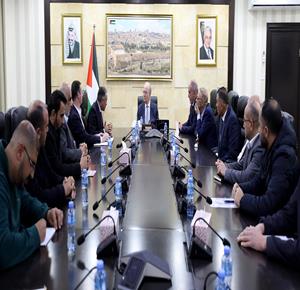 رام الله - رئيس الوزراء محمد مصطفى يلتقي ممثلين عن شركات توزيع الكهرباء بحضور مسؤولين في قطاع الطاقة، لبحث تنفيذ خطط الطاقة المتجددة وتعزيز أمن الطاقة