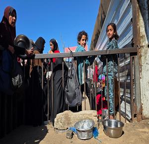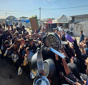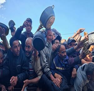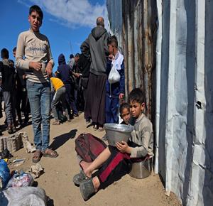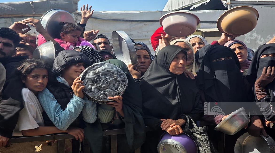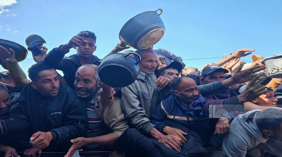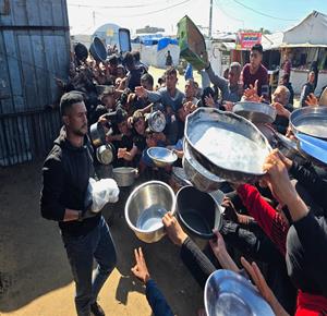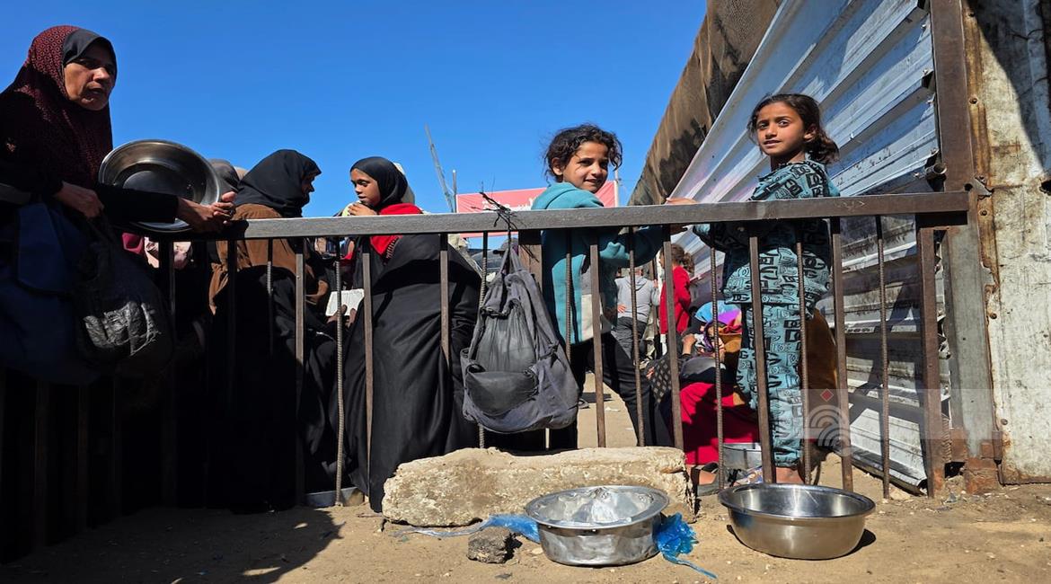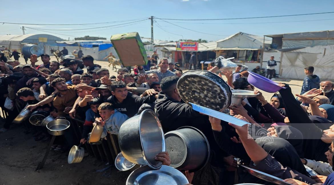 غزة - نازحون يتجمعون للحصول على وجبات طعام من مطبخ خيري في خان يونس جنوب قطاع غزة