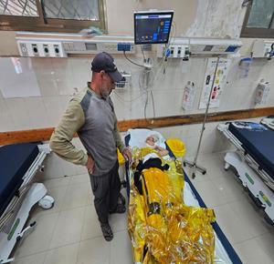غزة - وصول عدد من المصابين بينهم ثلاثة أطفال أحدهم في حالة حرجة إلى مستشفى المواصي الميداني جراء استهداف السفن البحرية الإسرائيلية النازحين بالقرب من الشاطئ في خان يونس