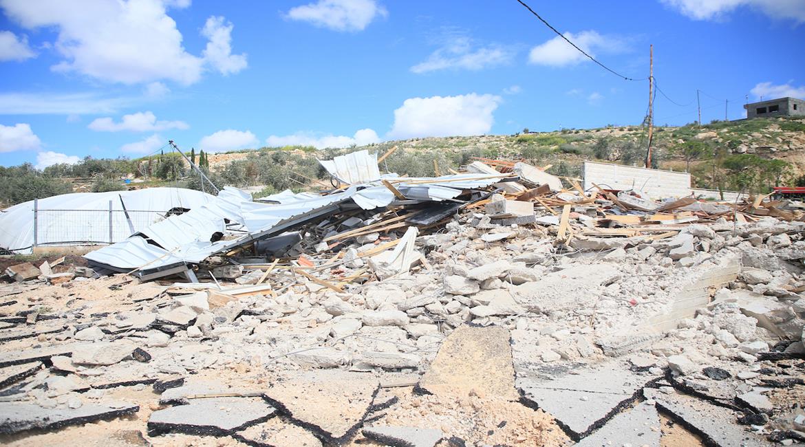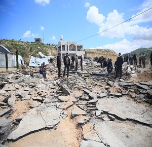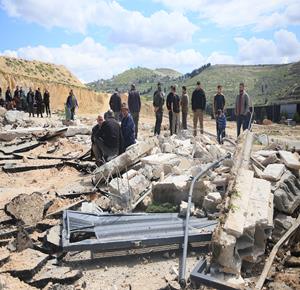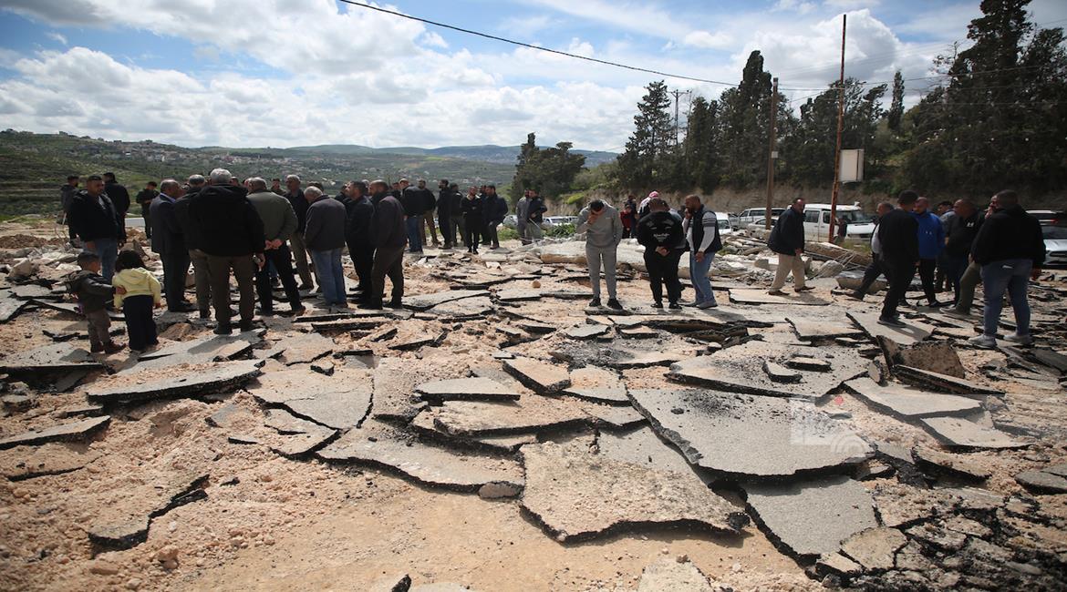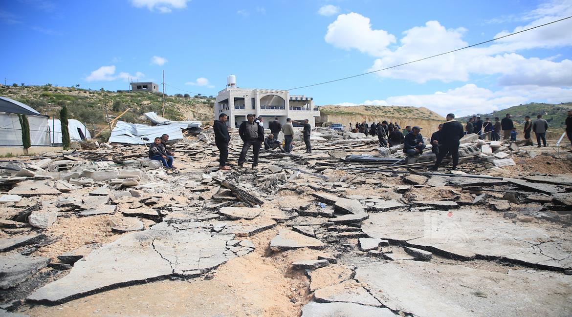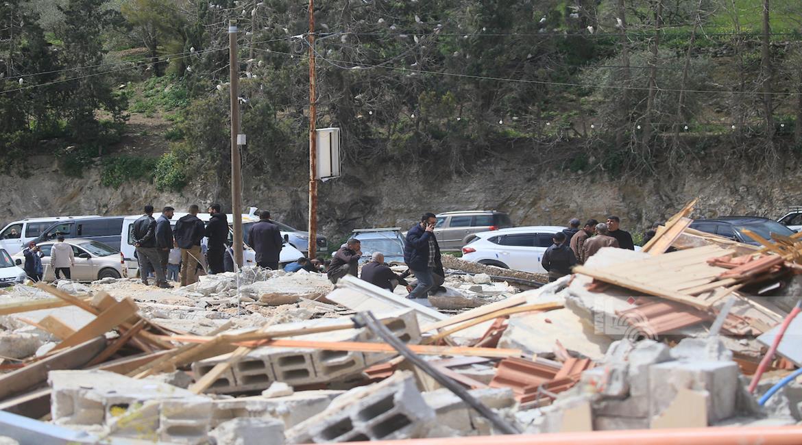 جنين - مواطنون يتفقدون أنقاض منزل ومتجر هدمتهما جرافات الاحتلال بدعوى البناء دون ترخيص، في قرية الزاوية جنوب جنين