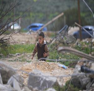 مواطنون يتفقدون منازلهم التي أحرقها المستعمرون مساء أمس خلال هجومهم على قرية دير الحطب شرق مدينة نابلس