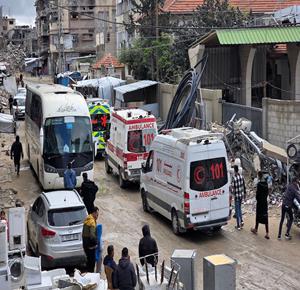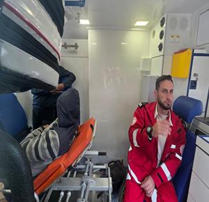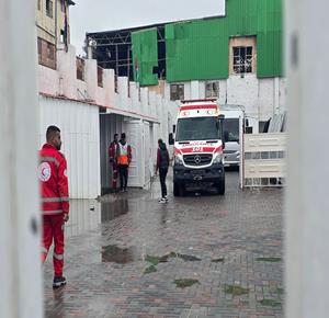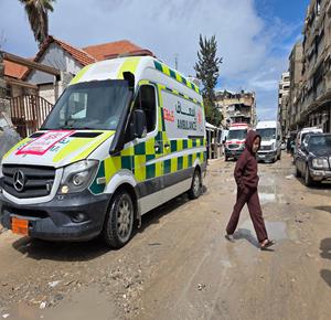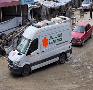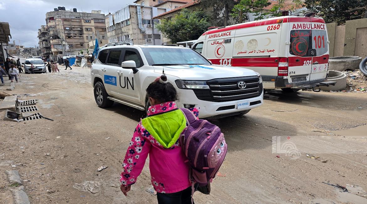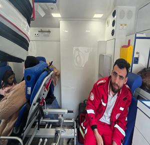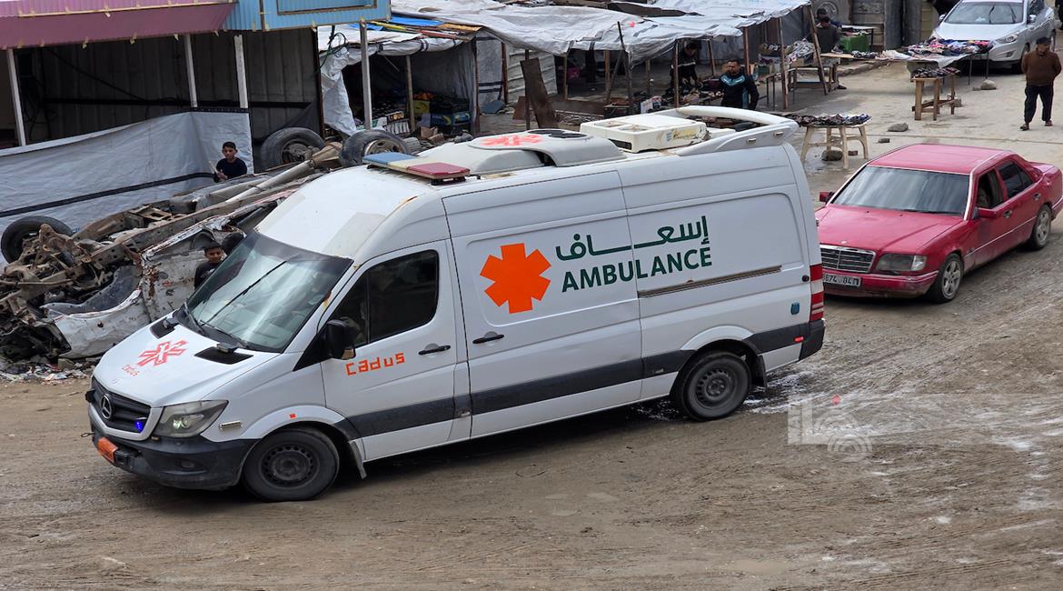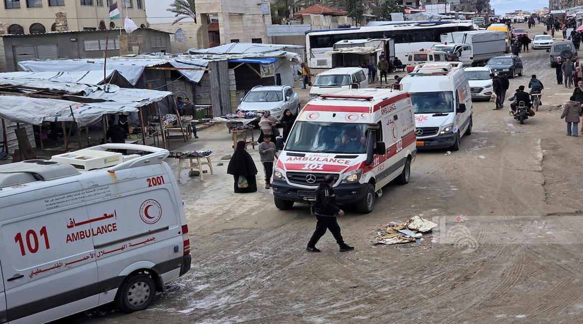 غزة - سيارات إسعاف وفرق طبية تُجلي مجموعة من المواطنين المرضى والجرحى من خان يونس جنوب قطاع غزة، نحو معبر رفح الحدودي
