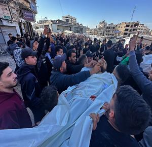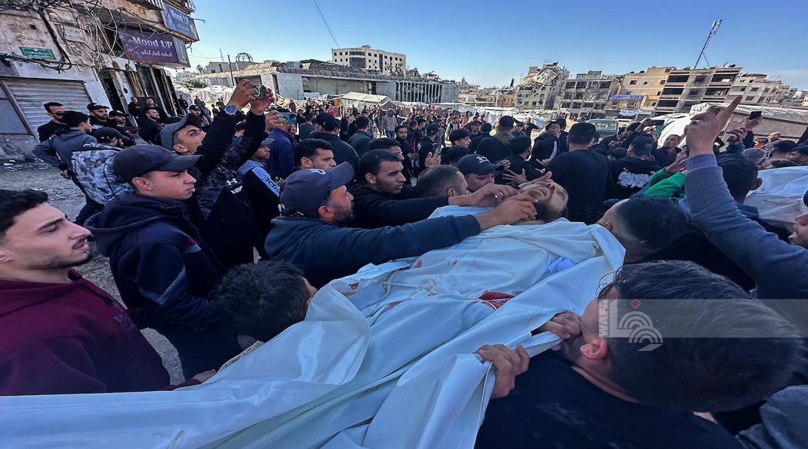 غزة - وداع وتشييع الشقيقين سعيد وفهمي قدوم، اللذين ارتقيا في غارة جوية إسرائيلية بطائرة مسيرة في حي الشجاعية شرق مدينة غزة