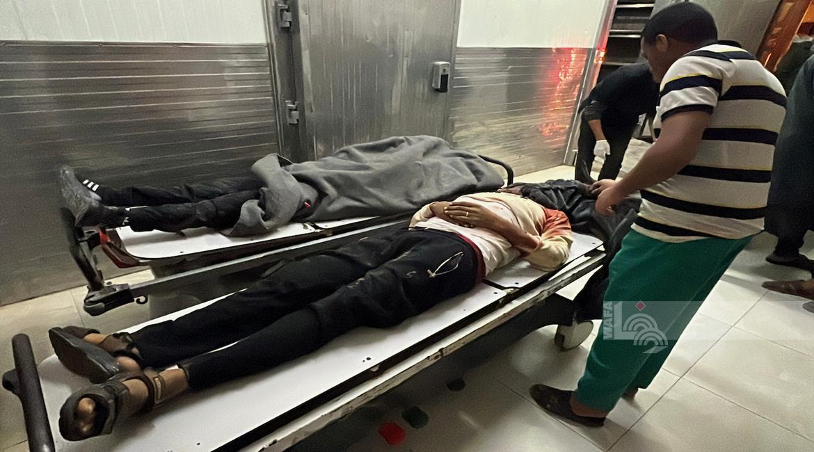 وصول جثمان الطفل مقبل بربخ إلى مستشفى ناصر بخان يونس ارتقى بنيران جيش الاحتلال أثناء توجهه لإستلام طرد غذائي على شارع صلاح الدين