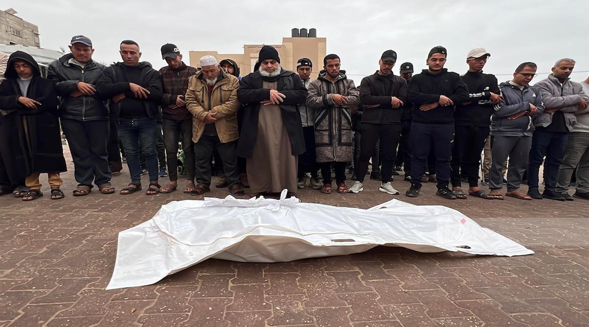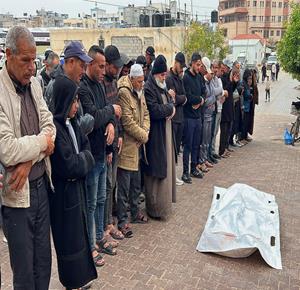 غزة - وداع وتشييع 6 شهداء في مستشفى ناصر بخان يونس ارتقوا جراء القصف الاسرائيلي