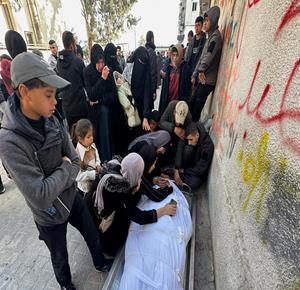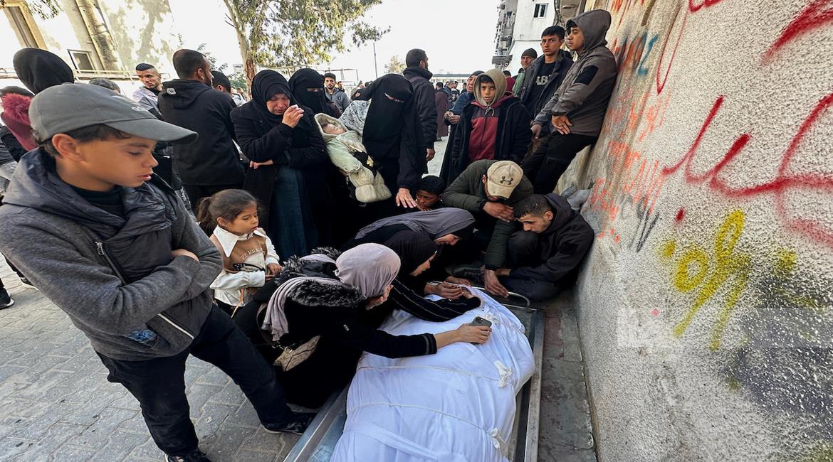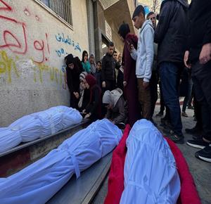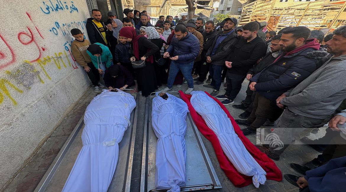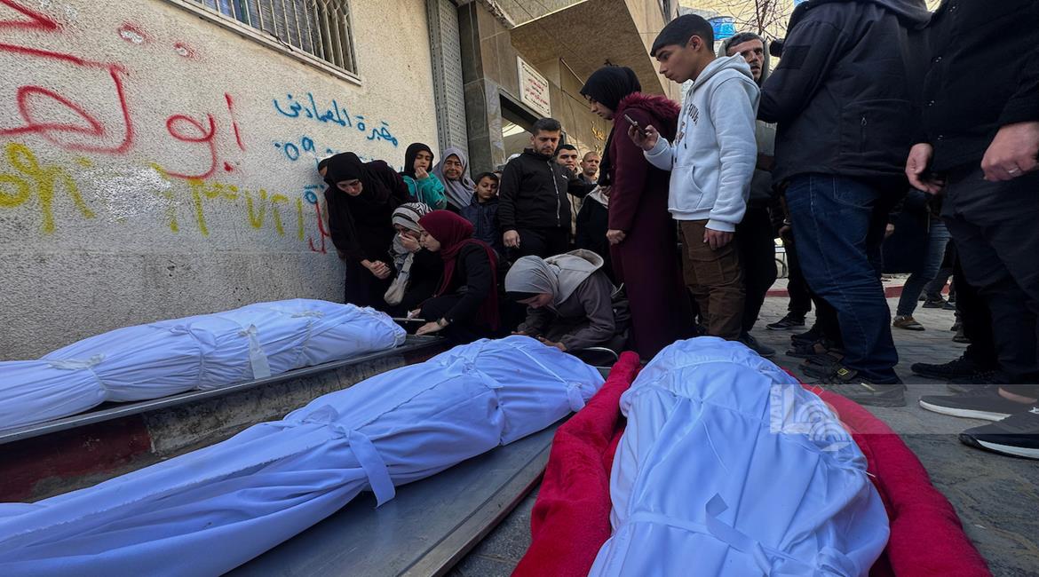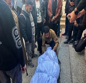 غزة - وداع وتشييع 3 شهداء في مستشفى الشفاء ارتقوا جراء قصف الاحتلال على حي الزيتون شرق مدينة غزة