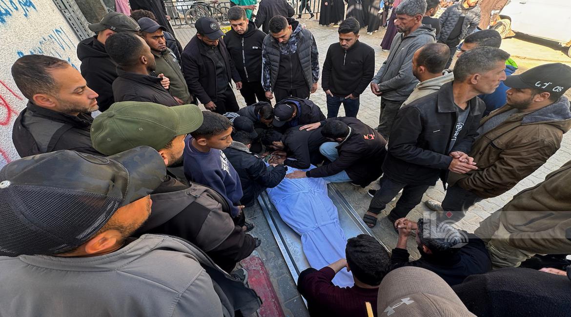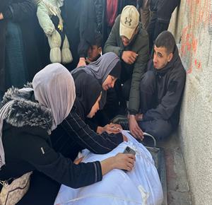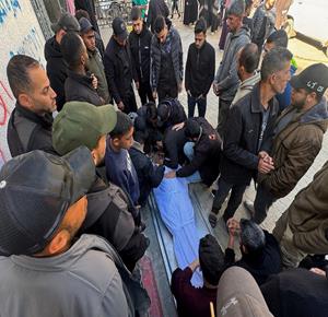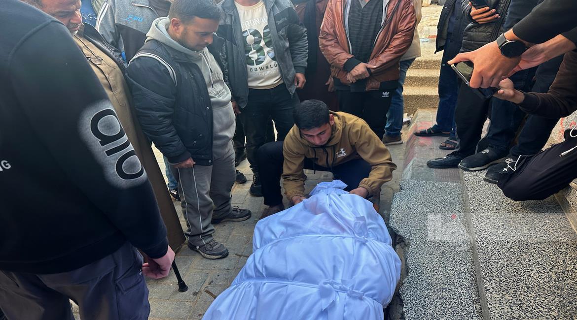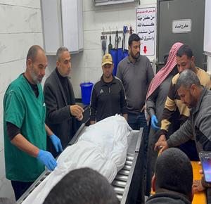 وصول جثمان الطفل مقبل بربخ إلى مستشفى ناصر بخان يونس ارتقى بنيران جيش الاحتلال أثناء توجهه لإستلام طرد غذائي على شارع صلاح الدين