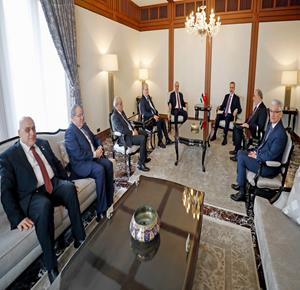 نائب رئيس دولة فلسطين حسين الشيخ يلتقي رئيس البرلمان التركي نعمان قورتولوموش برفقة وفد رفيع المستوى