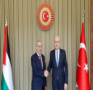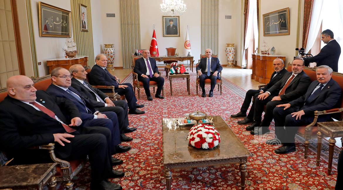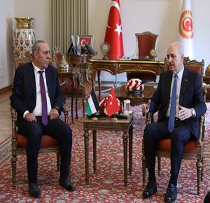 انقرة - نائب رئيس دولة فلسطين حسين الشيخ يلتقي رئيس البرلمان التركي نعمان قورتولوموش برفقة وفد رفيع المستوى