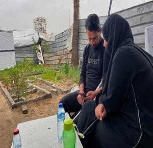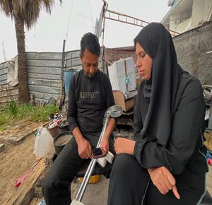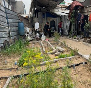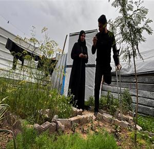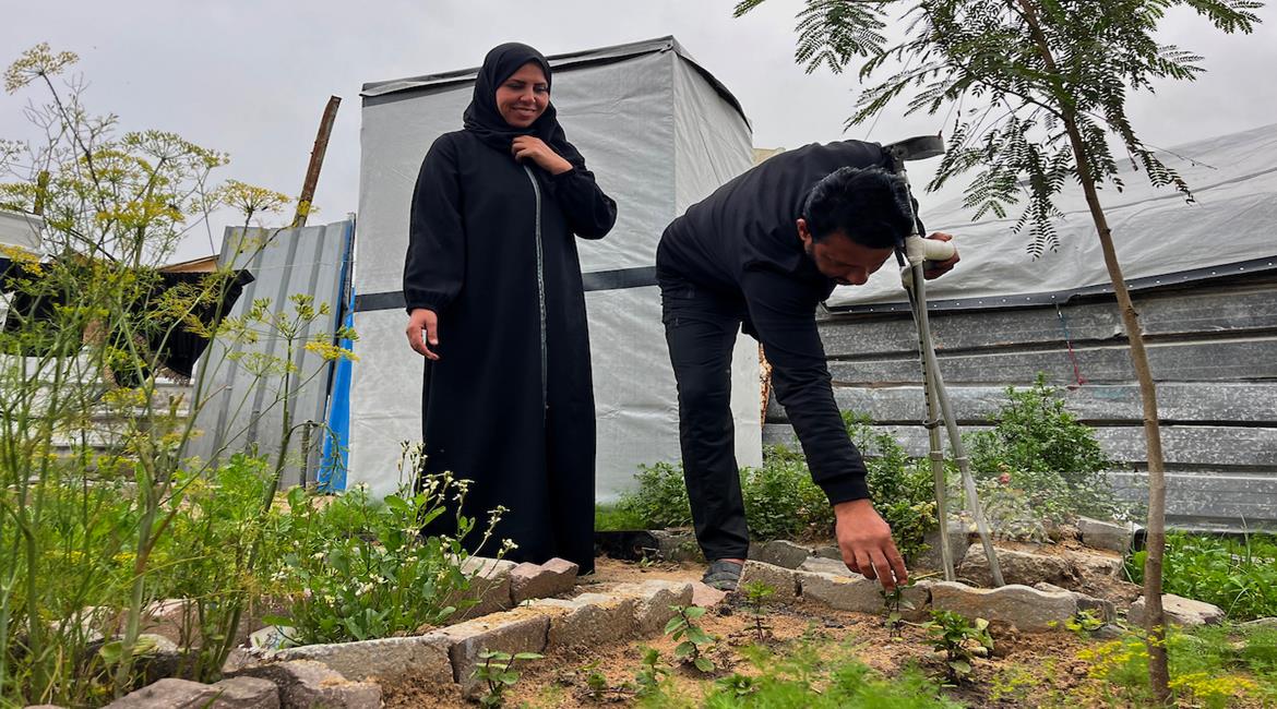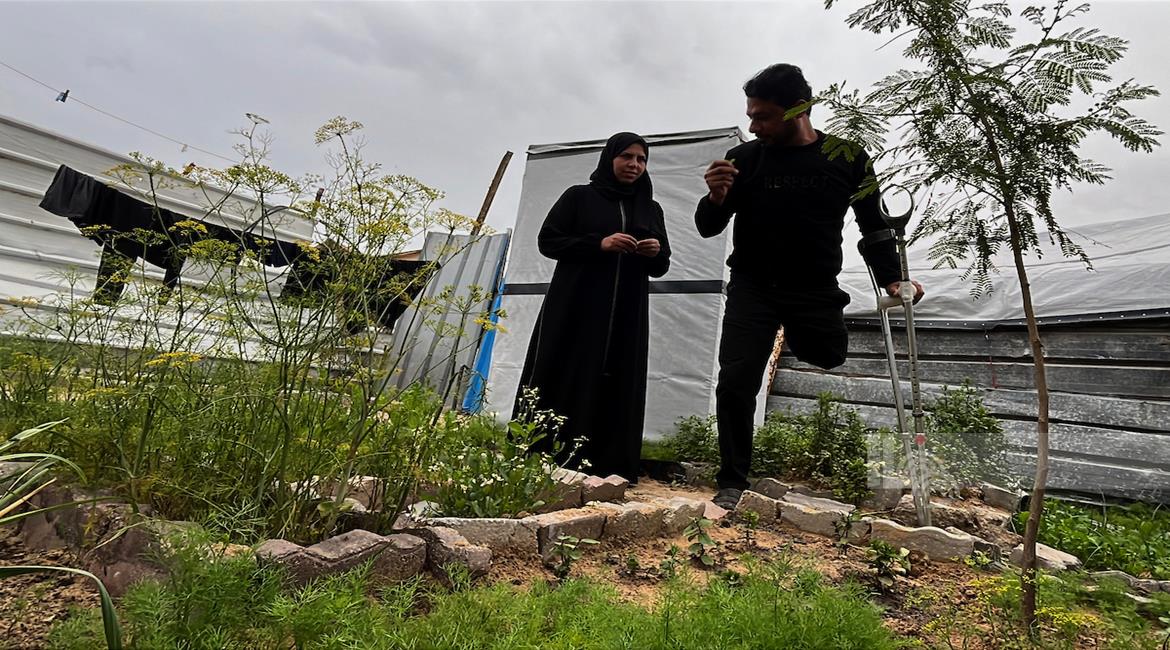 غزة - محمد نصير،فقد ساقه بقصف إسرائيلي استهدف مدنيين داخل المستشفى الإندونيسي مع بداية العدوان على غزة، فبعد شهور من النزوح واجتماعه بعائلته في خيمة بمدينة غزة، شرع بزراعة الأرض المحيطة بها لتأمين مصدر دخل لأطفاله الخمسة