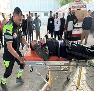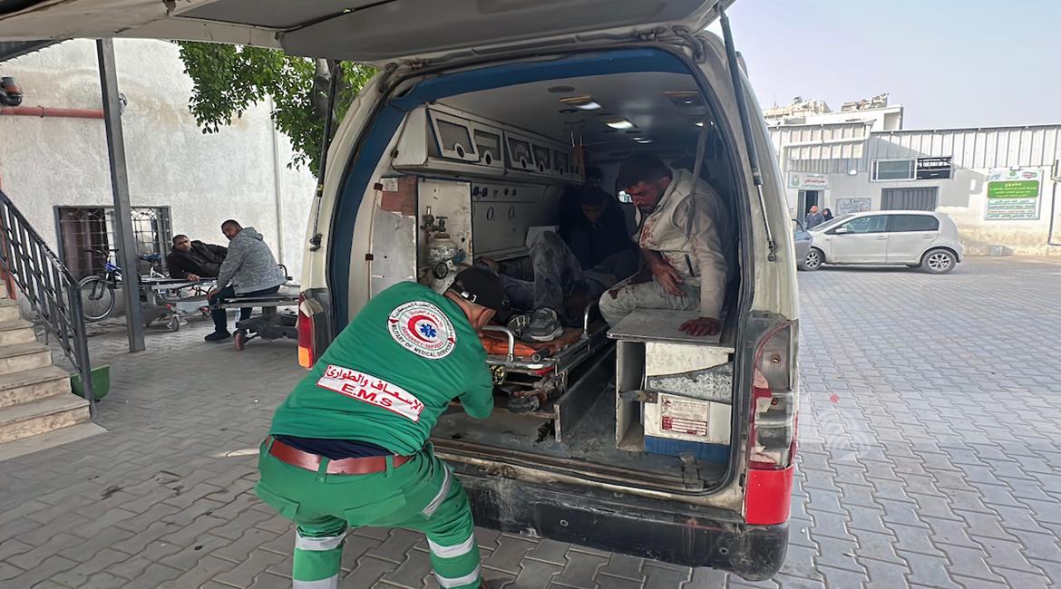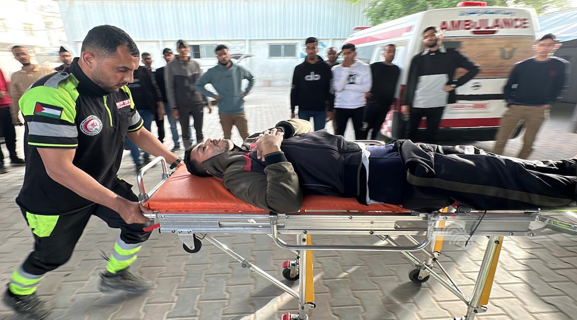 غزة - نقل عدد من الجرحى الى مستشفى الشفاء في مدينة غزة جراء استهداف الاحتلال الاسرائيلي مجموعة من المواطنين شمال غزة
