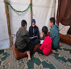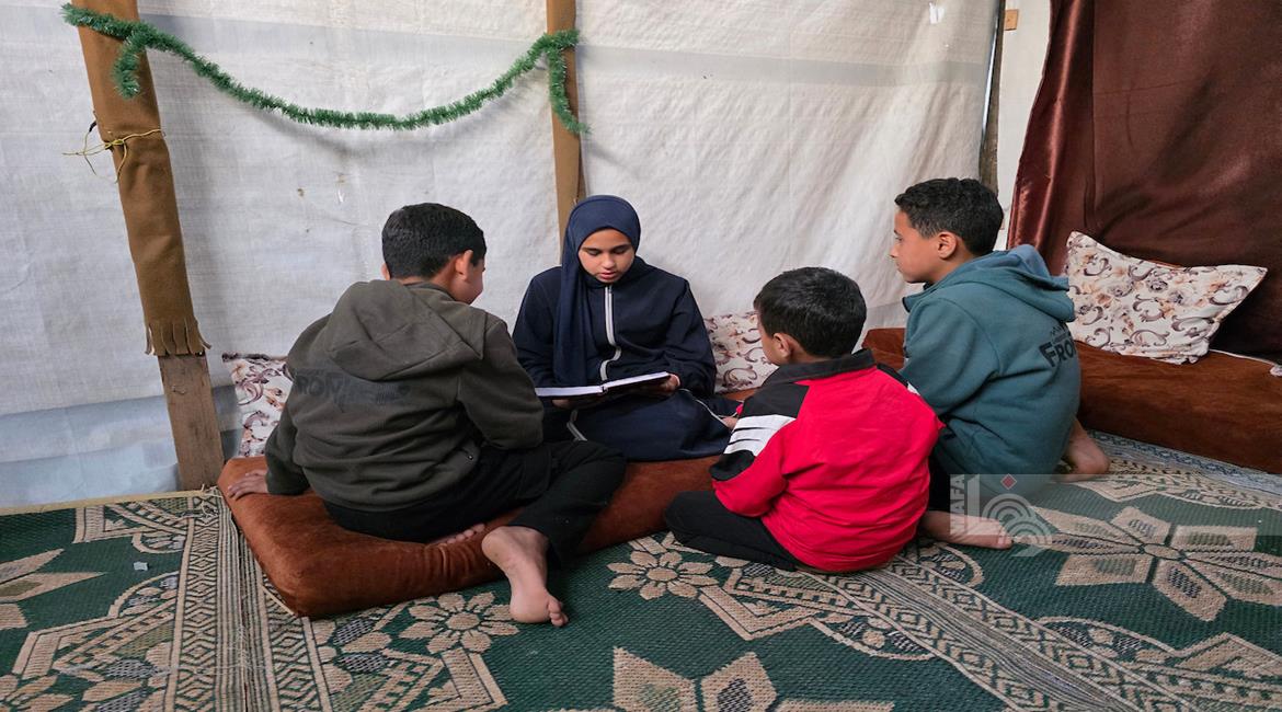غزة - ستة أشقاء من عائلة بعلوشة يعيشون في مخيم للأيتام في خان يونس جنوب قطاع غزة بعد نزوحهم من جباليا شمالاً، عقب استشهاد والدهم في العدوان الإسرائيلي