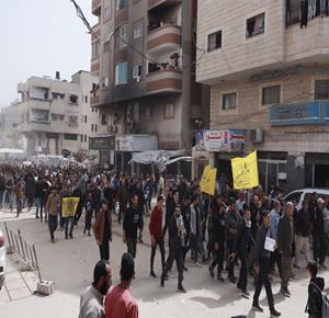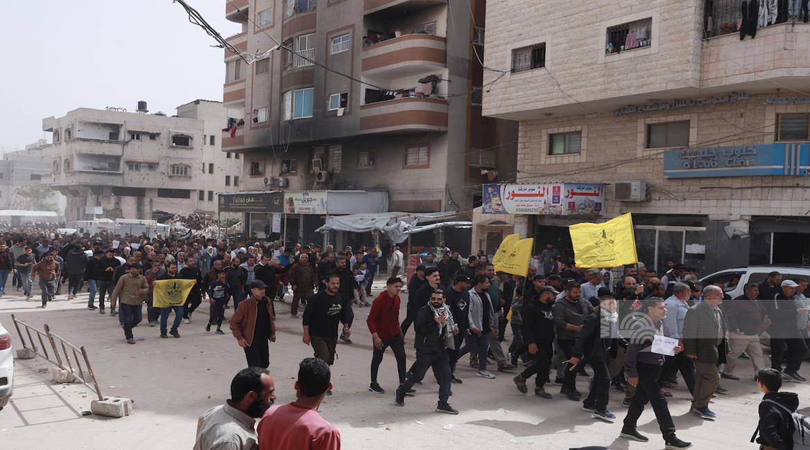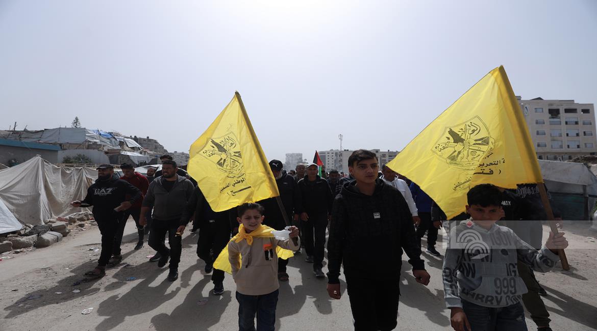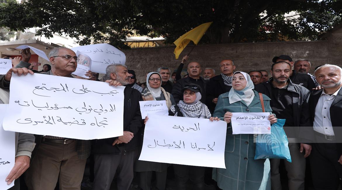 غزة - حركة "فتح" تنظم مسيرة ووقفة أمام مقر الصليب الأحمر في مدينة غزة رفضاً لقانون إعدام الأسرى