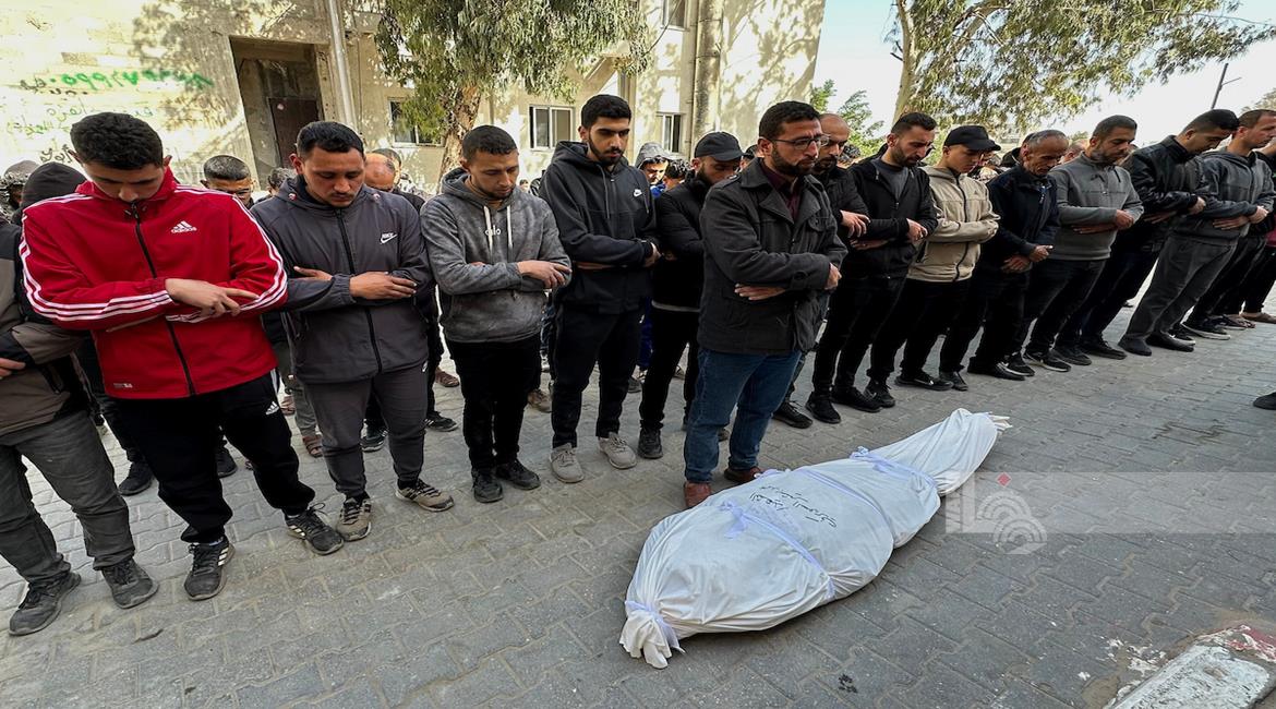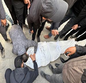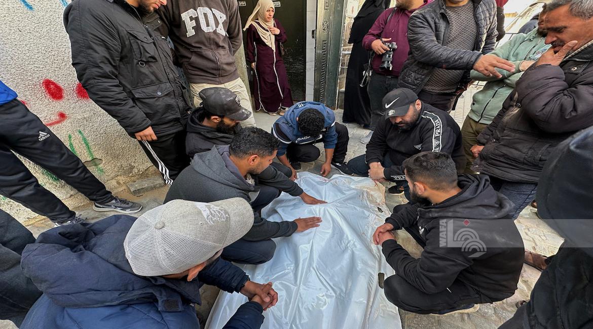 غزة - وداع وتشييع 4 شهداء ارتقوا جراء غارة اسرائيلية قرب ساحة الشوا في حي التفاح