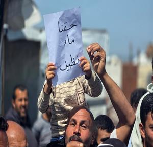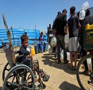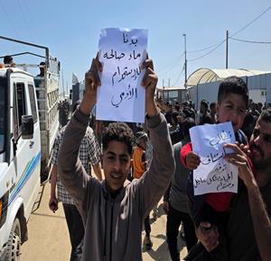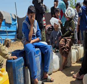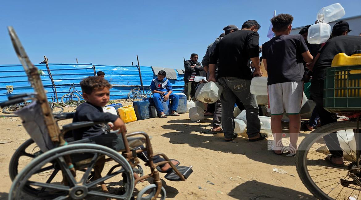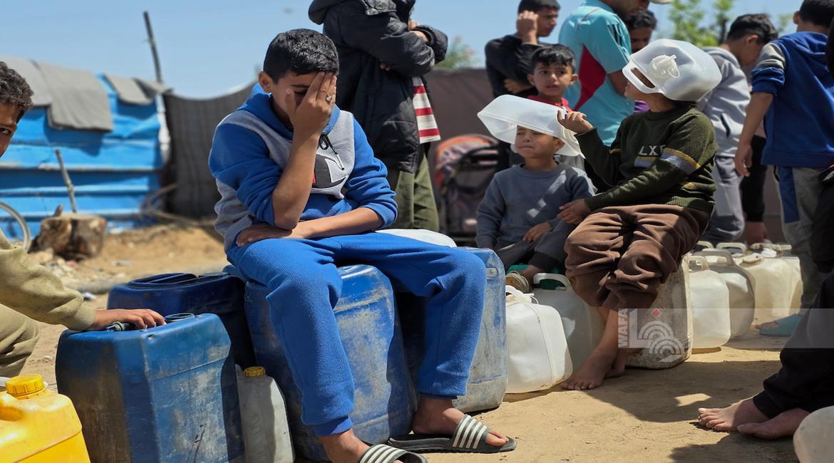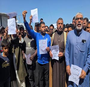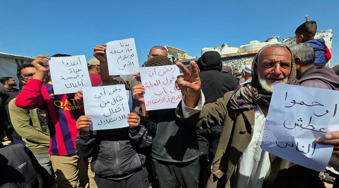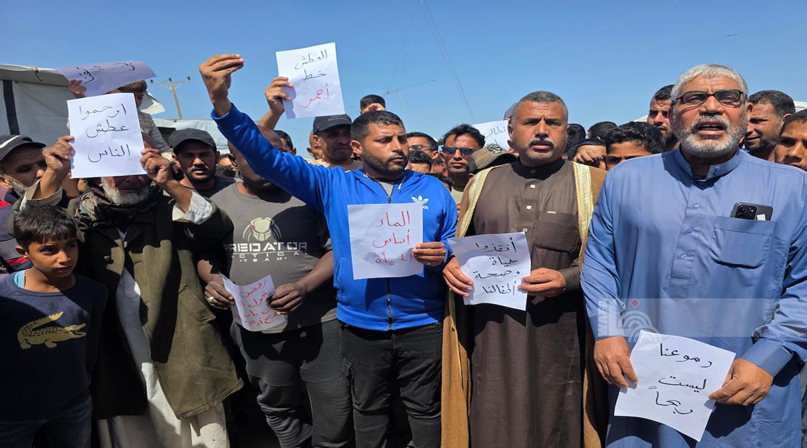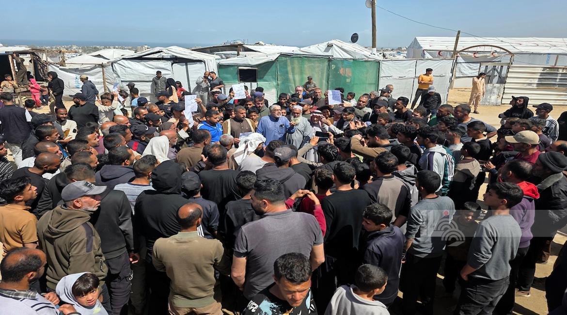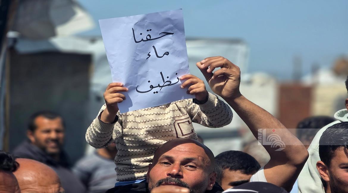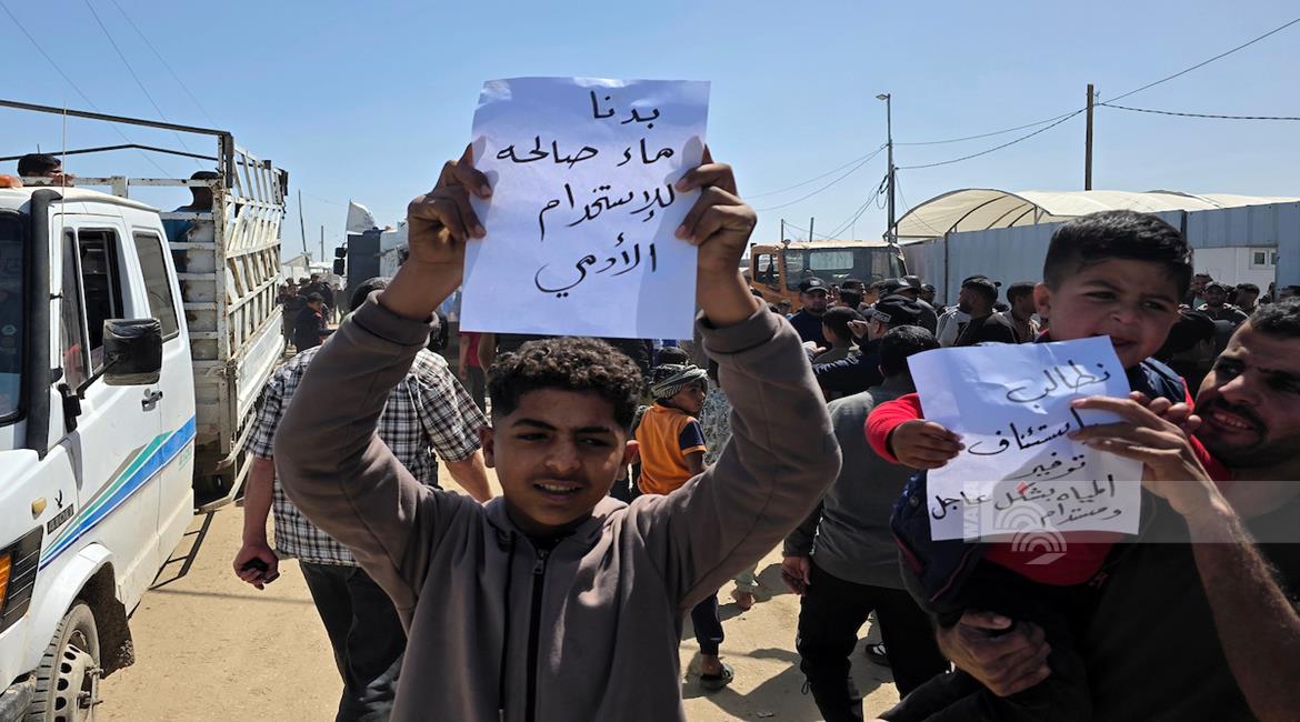 غزة - نازحون يعتصمون للمطالبة بإنهاء أزمة مياه الشرب في خان يونس جنوب قطاع غزة