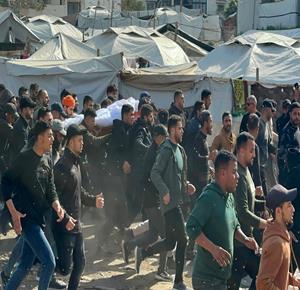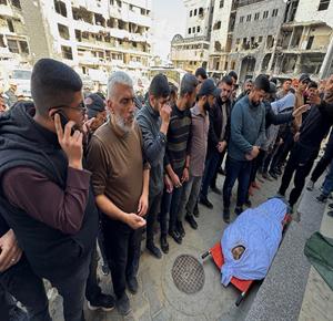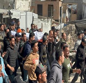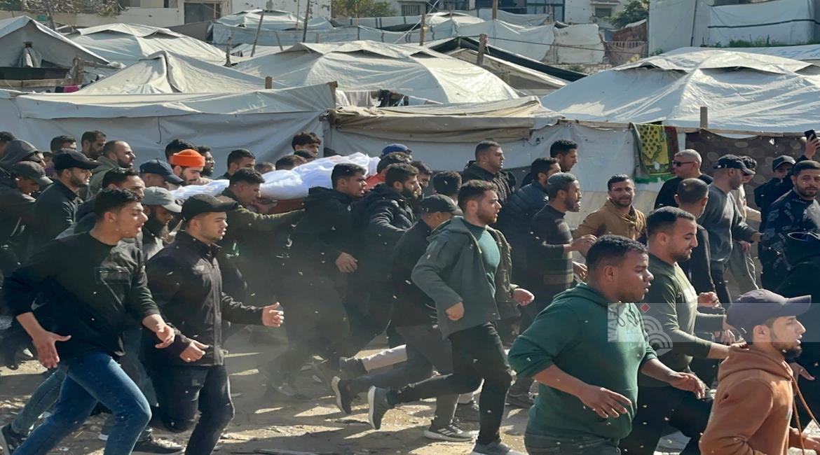 وداع وتشييع 4 شهداء ارتقوا جراء غارة اسرائيلية قرب ساحة الشوا في حي التفاح