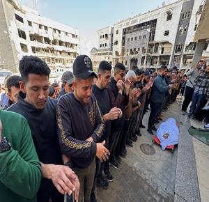 غزة - وداع وتشييع شهيدين ارتقيا جراء غارة جوية إسرائيلية في مدينة غزة