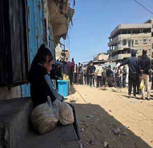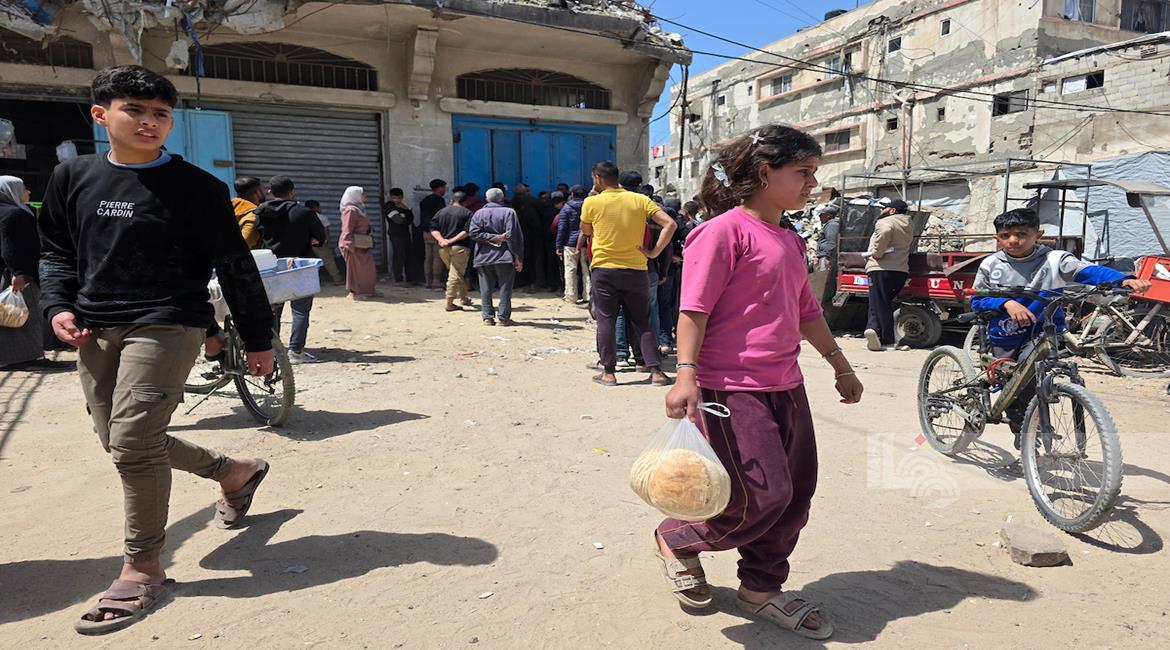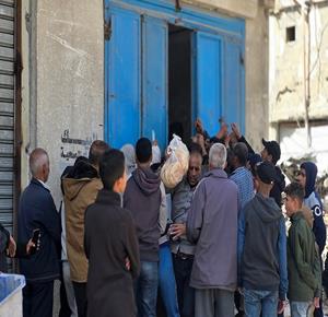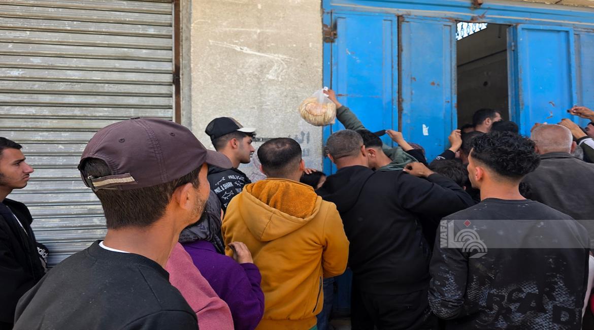 غزة - مواطنون ينتظرون في طوابير للحصول على الخبز وسط نقص حاد وإغلاق المخابز في خان يونس جنوب قطاع غزة