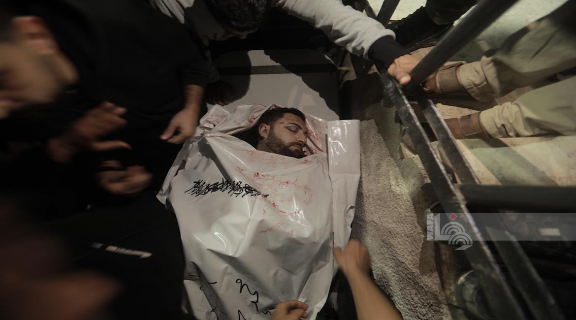 وداع وتشييع شهيد ارتقى بغارة جوية إسرائيلية في حي الشيخ رضوان بمدينة غزة
