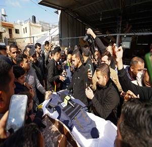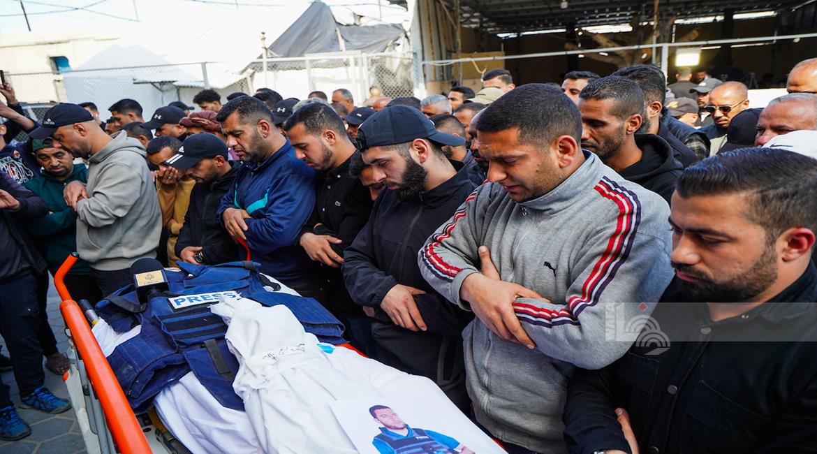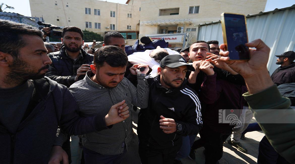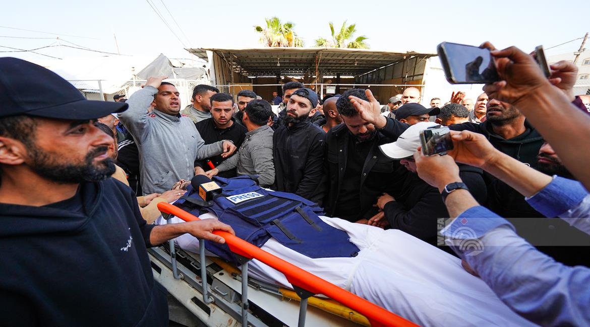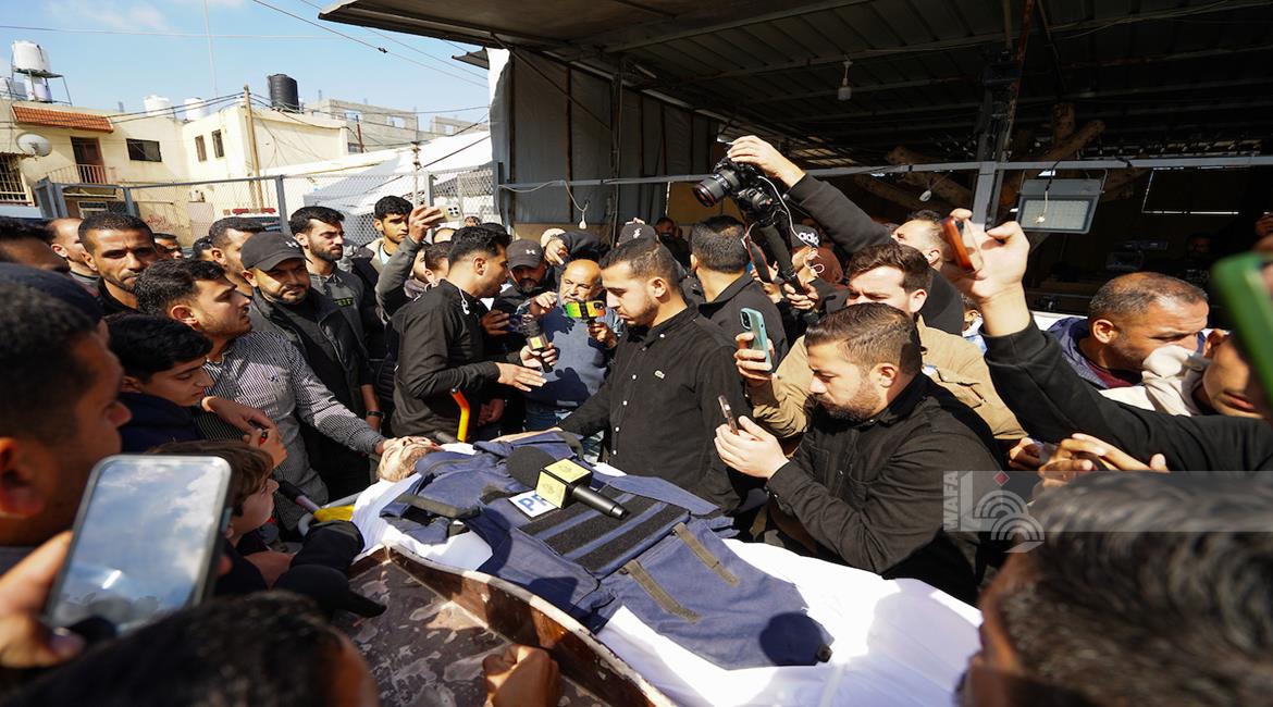 غزة - وداع وتشييع الصحفي محمد وشاح في مستشفى شهداء الأقصى بدير البلح وسط قطاع غزة