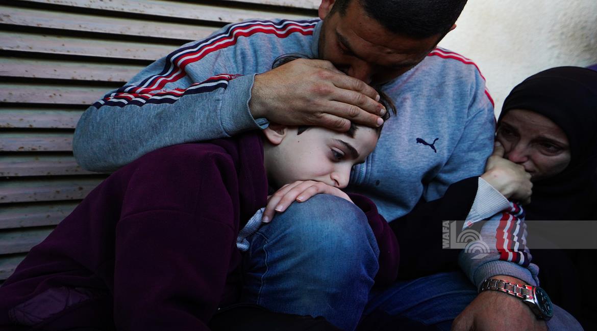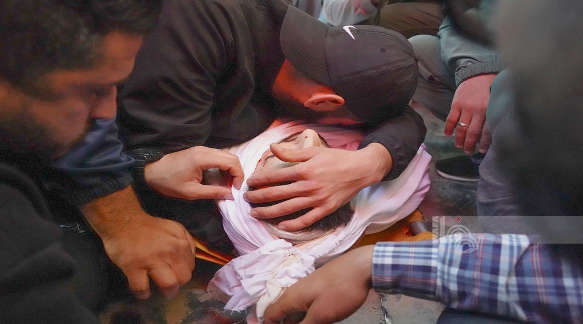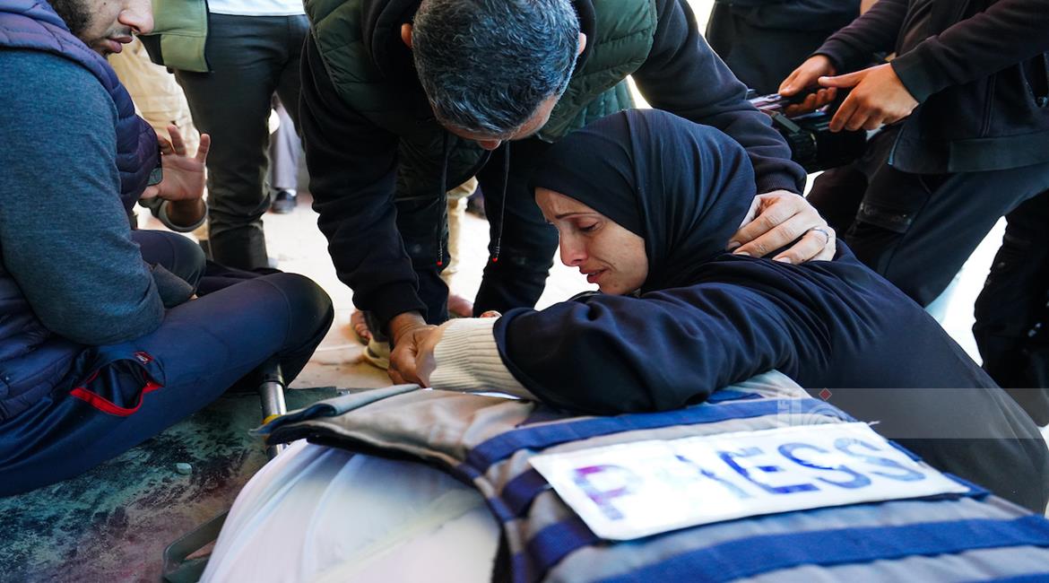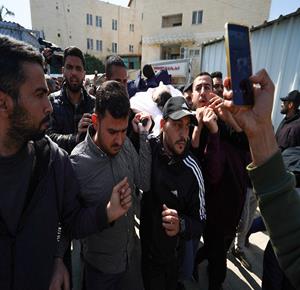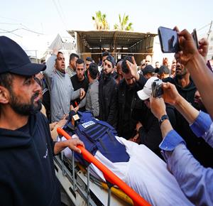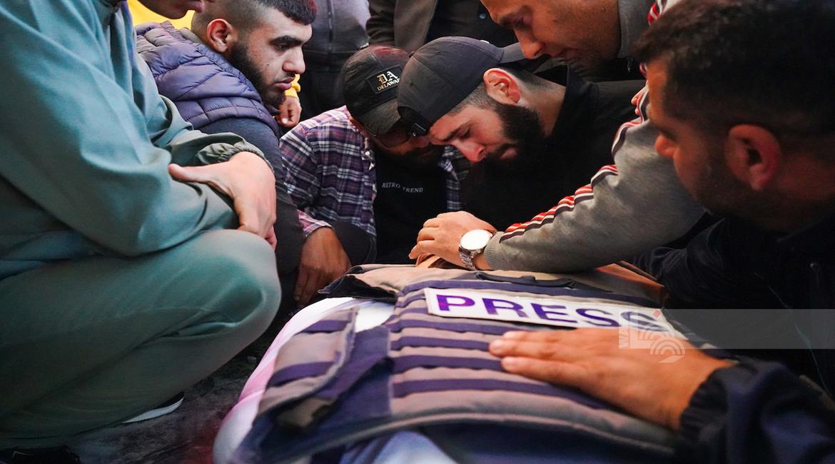 غزة - وداع وتشييع الصحفي محمد وشاح في مستشفى شهداء الأقصى بدير البلح وسط قطاع غزة