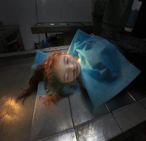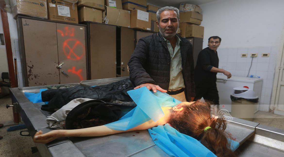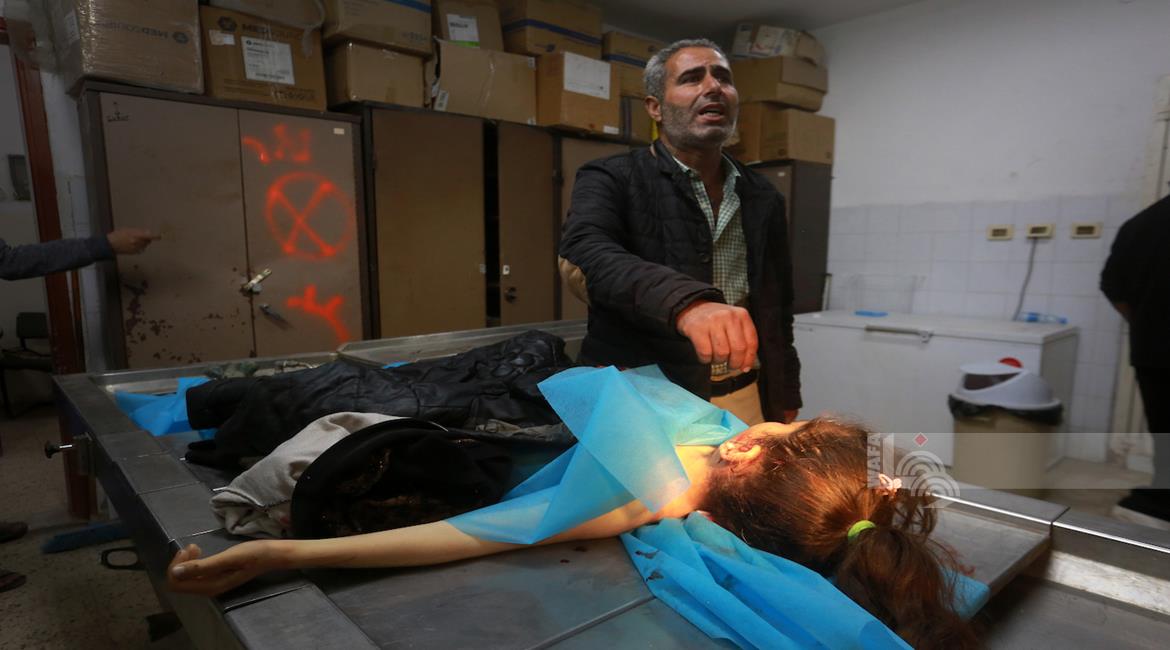 غزة - وصول جثمان الطفلة ريتاج عبد الرؤوف ريحان (13 عاماً) إلى مستشفى الشفاء بمدينة غزة إثر إصابتها بطلق ناري أثناء تلقيها التعليم داخل خيمة تعليمية في بيت لاهيا شمال القطاع
