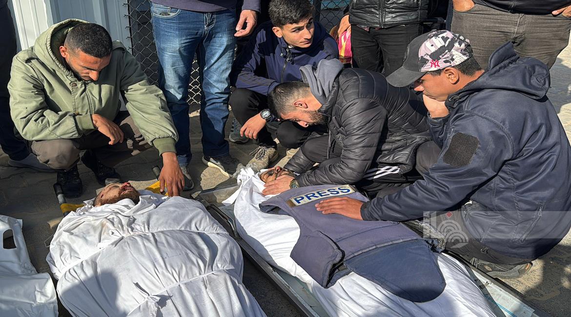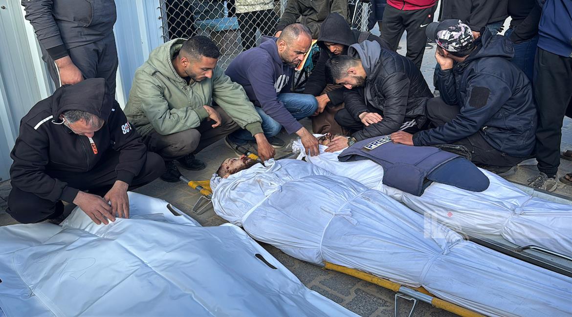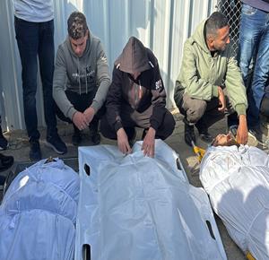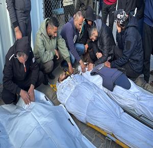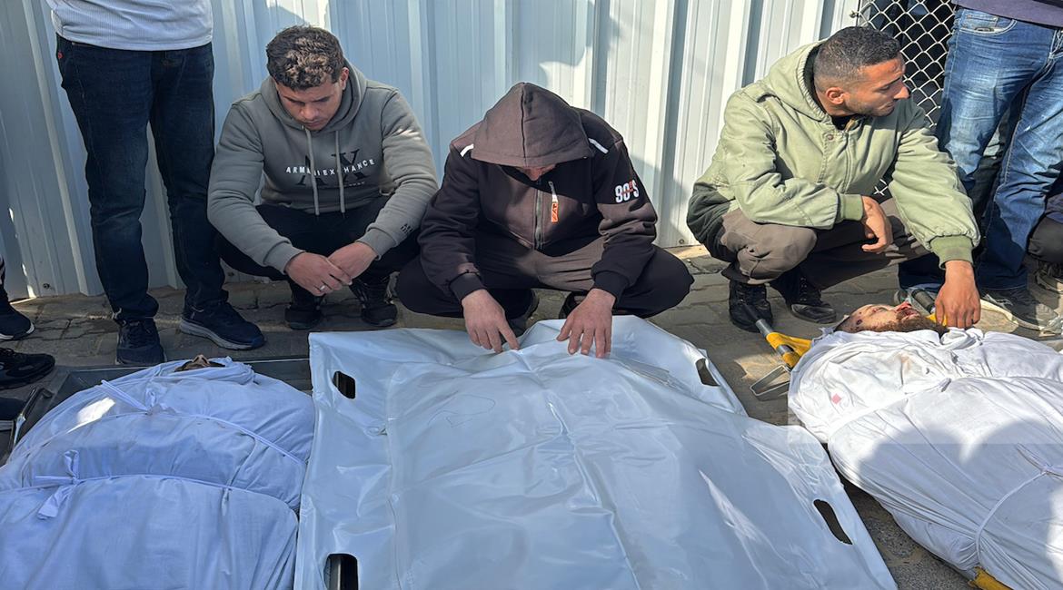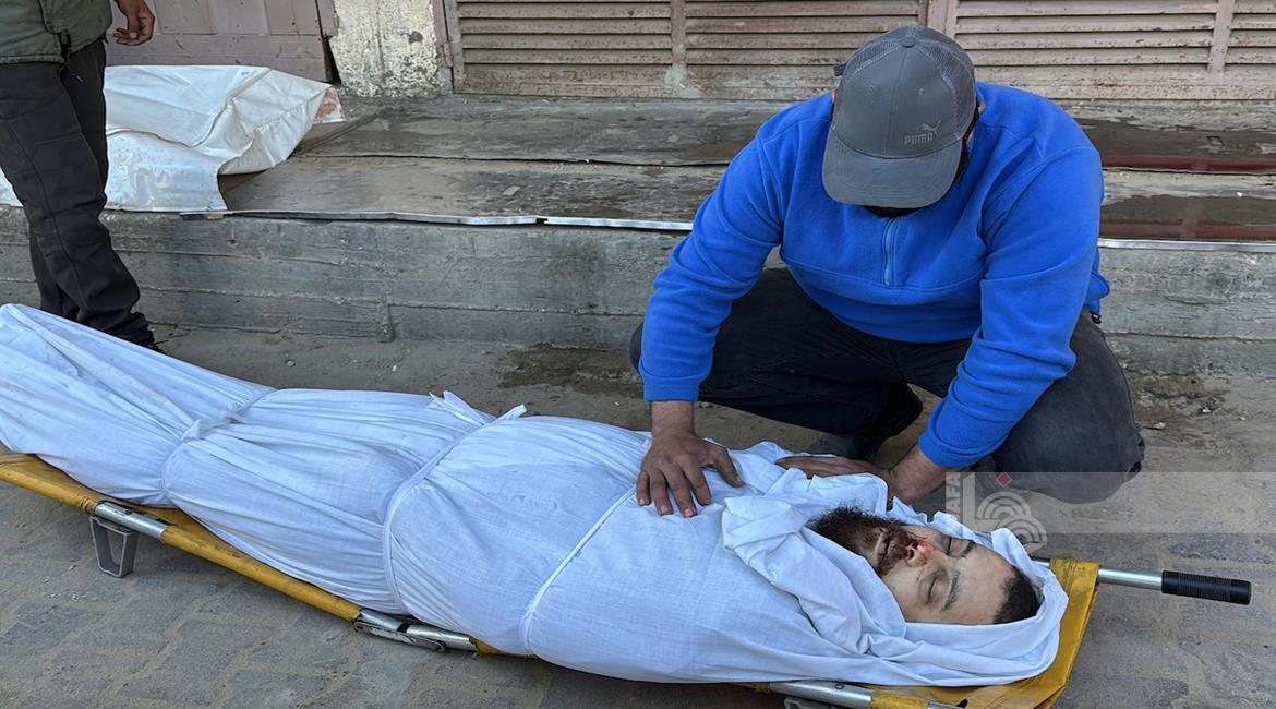 وداع شهيدين في مستشفى الشفاء بمدينة غزة. ارتقيا في غارة جوية إسرائيلية في جباليا، شمال قطاع غزة