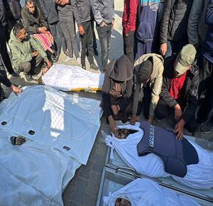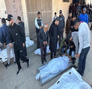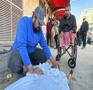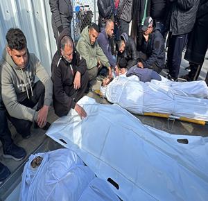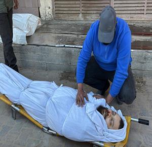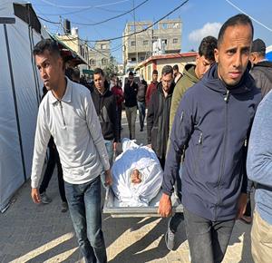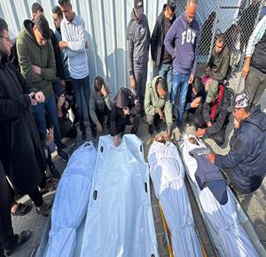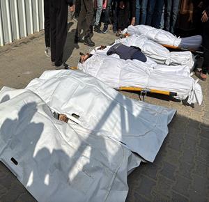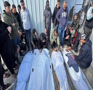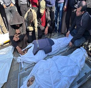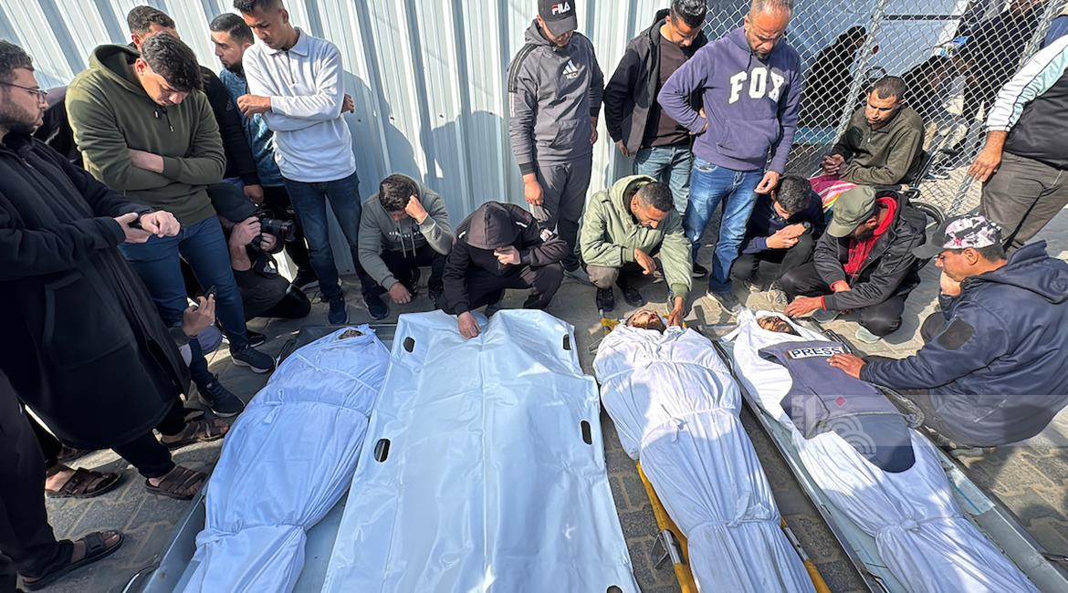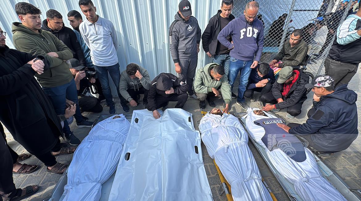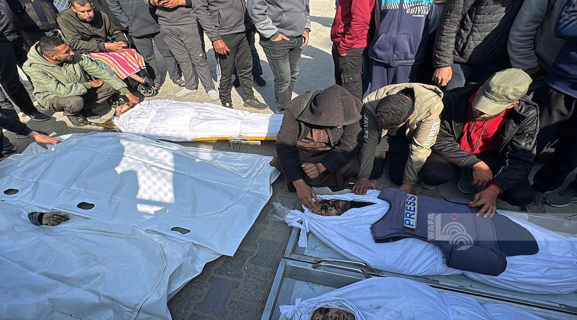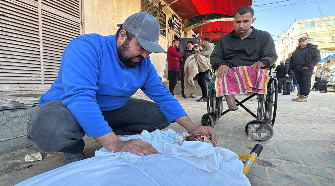 وداع شهيدين في مستشفى الشفاء بمدينة غزة. ارتقيا في غارة جوية إسرائيلية في جباليا، شمال قطاع غزة