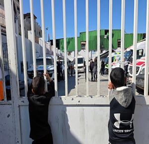 وصول 14 أسيراً إلى مستشفى شهداء الأقصى في دير البلح وسط قطاع غزة، عقب الإفراج عنهم من قبل قوات الاحتلال