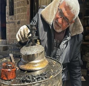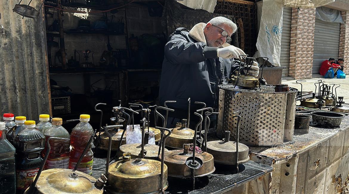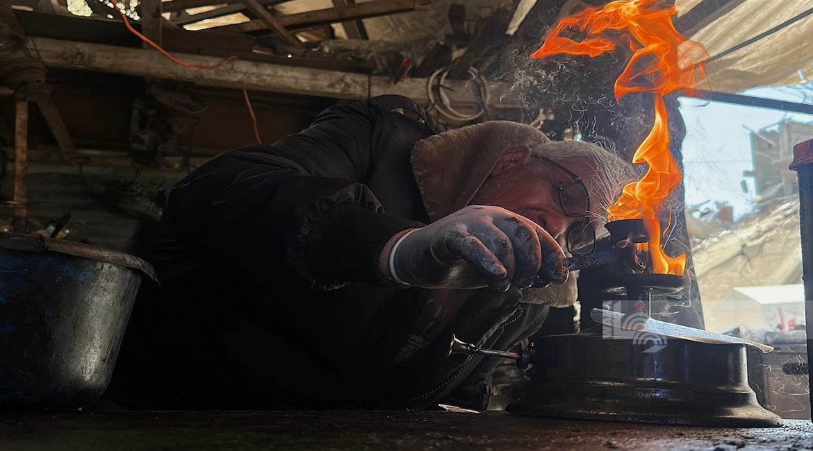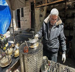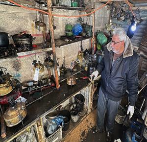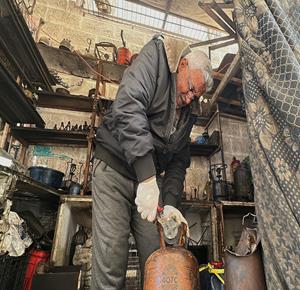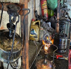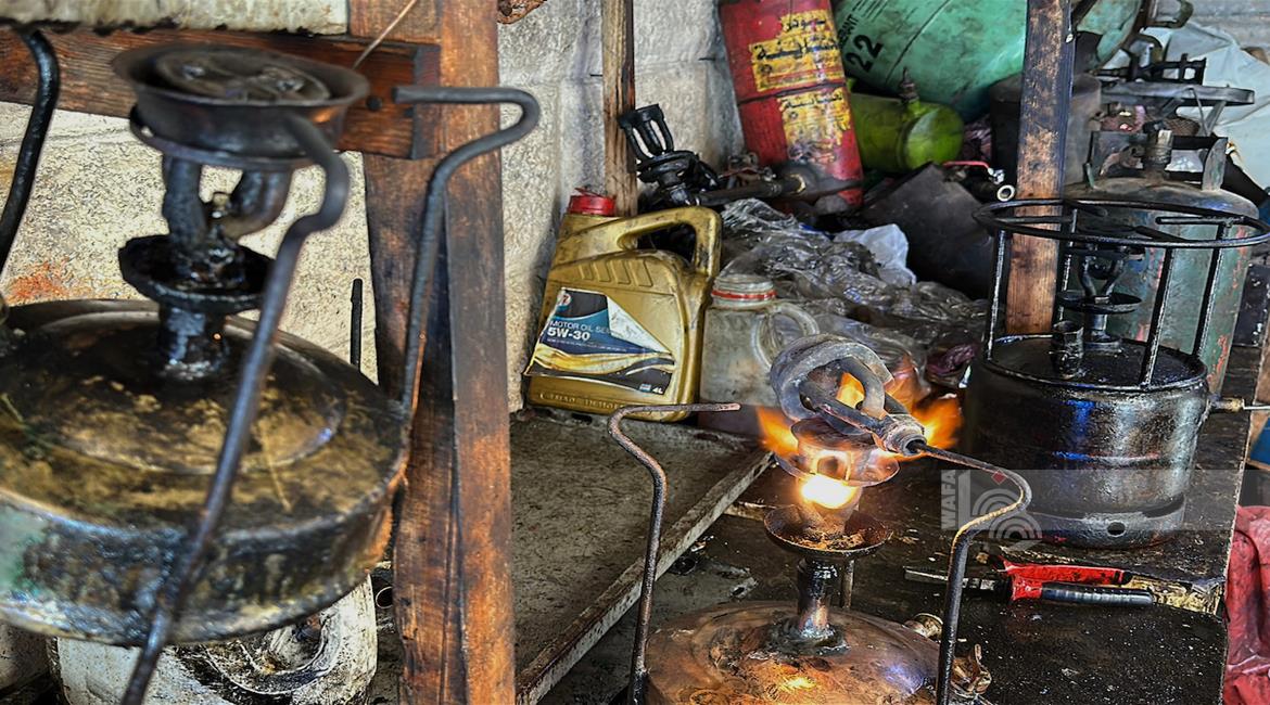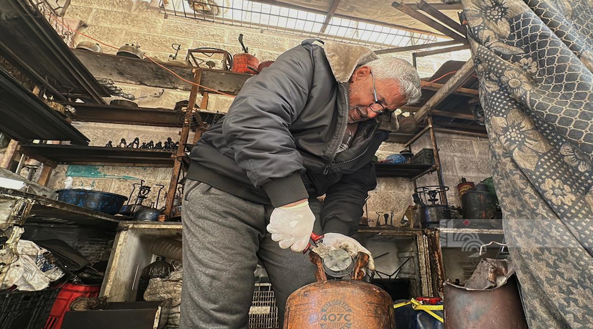 غزة - عادل عيسى يعيد العمل في صيانة مواقد الكاز "البابور" في مخيم الشاطئ بغزة في ظل النقص الحاد بغاز الطهي