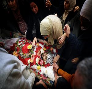 وصول جثمان الطفلة ريتاج عبد الرؤوف ريحان (13 عاماً) إلى مستشفى الشفاء بمدينة غزة إثر إصابتها بطلق ناري أثناء تلقيها التعليم داخل خيمة تعليمية في بيت لاهيا شمال القطاع