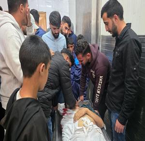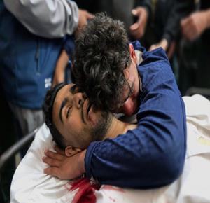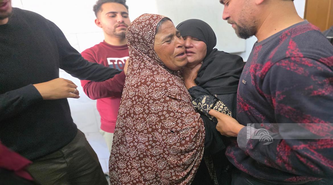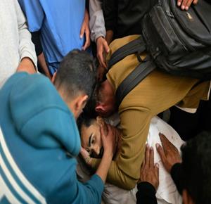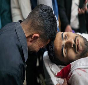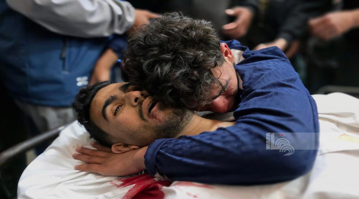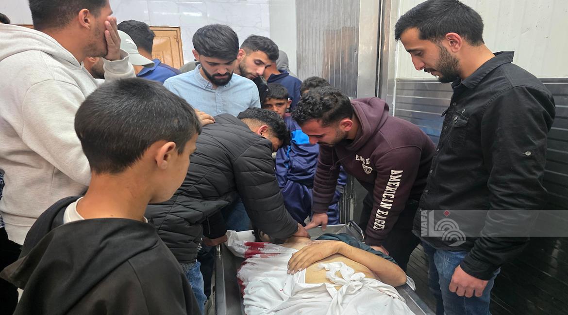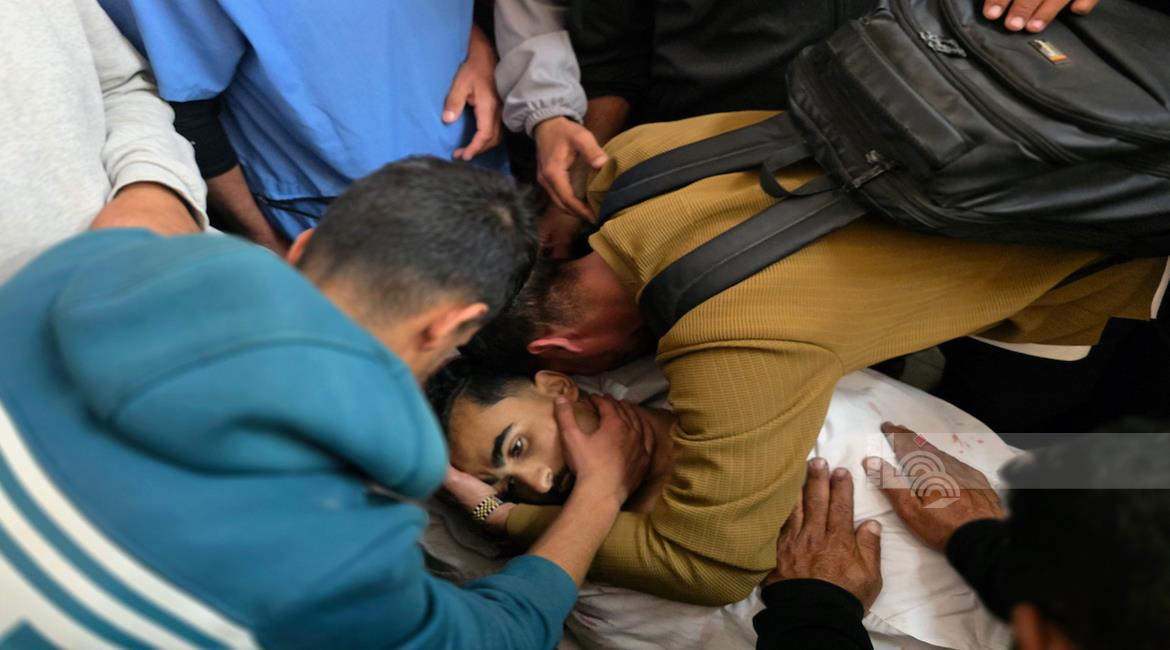 غزة - وداع شهيدين في مستشفى ناصر في خان يونس ارتقيا بعد استهدافهما بنيران الاحتلال الإسرائيلي في جنوب قطاع غزة