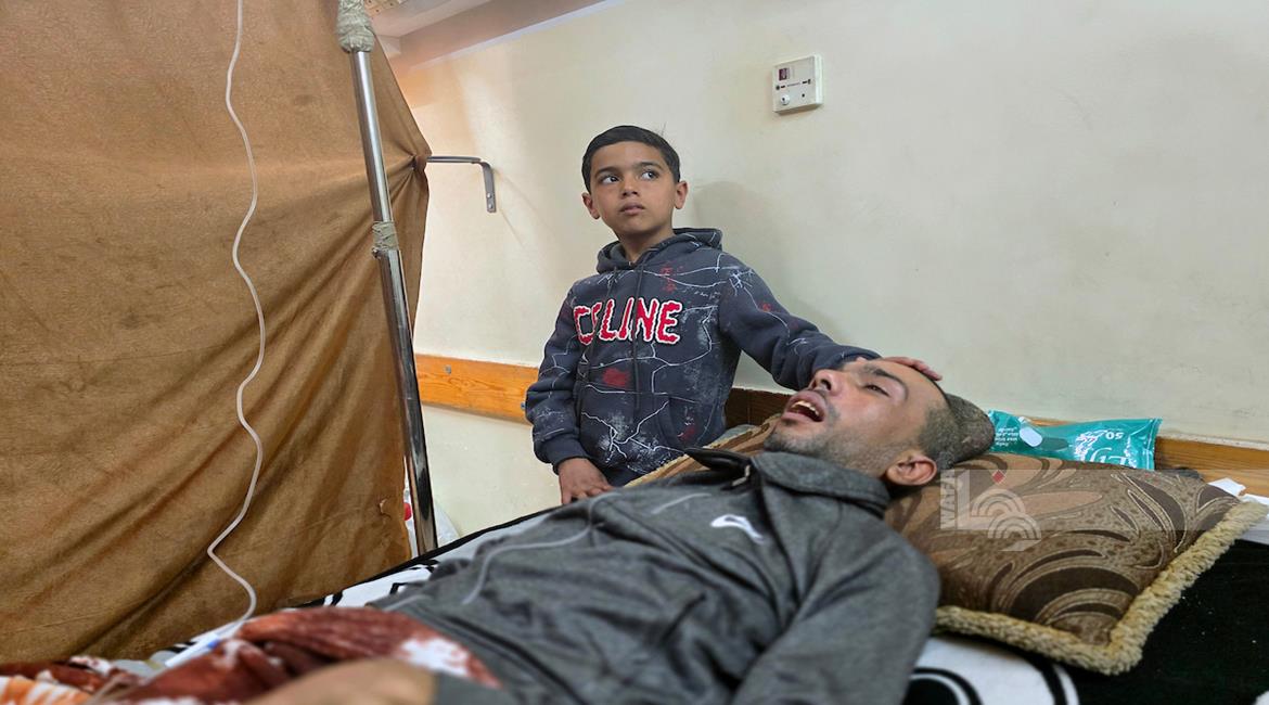 غزة - الشاب رائد المريدي يرقد على سرير العلاج في مستشفى ناصر بخان يونس في انتظار السفر خارج قطاع غزة لاستكمال العلاج، بعد إصابته بشلل رباعي جراء قصف إسرائيلي