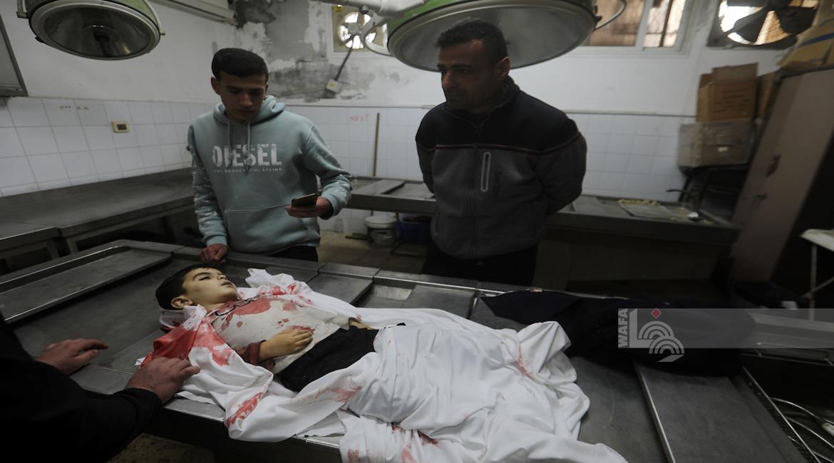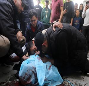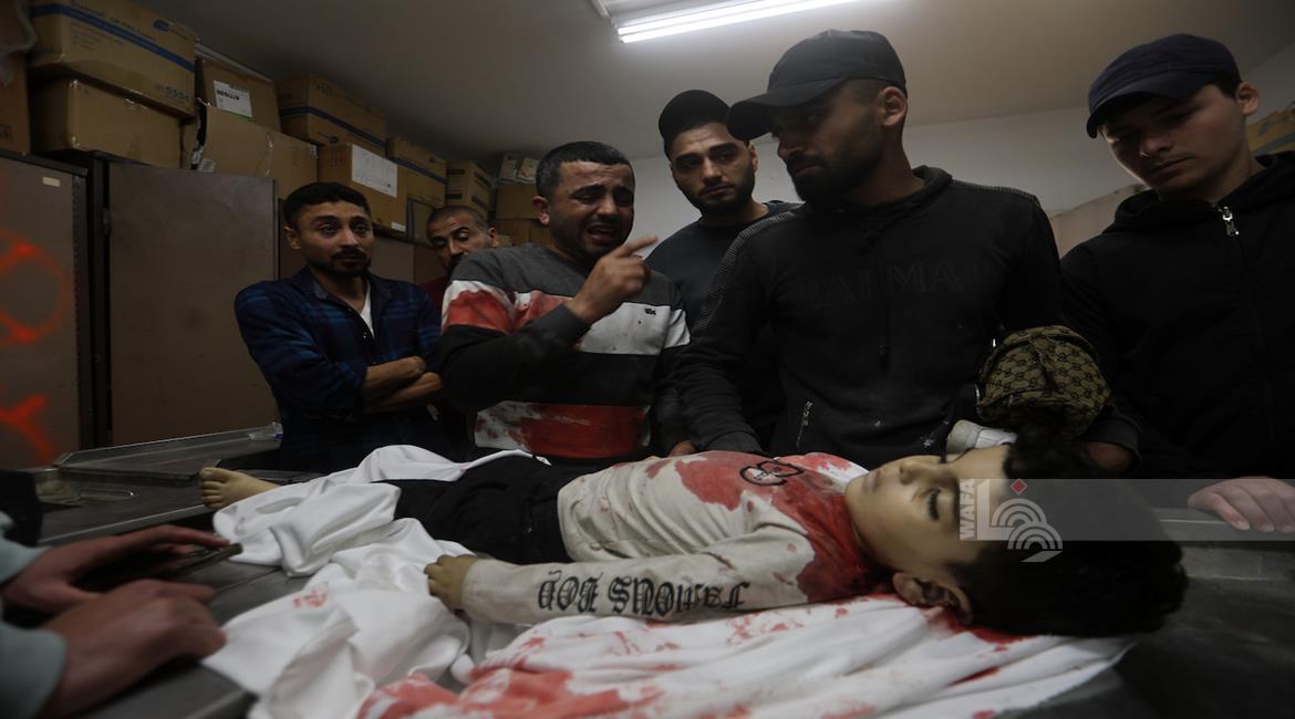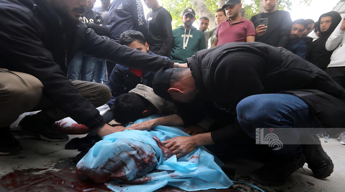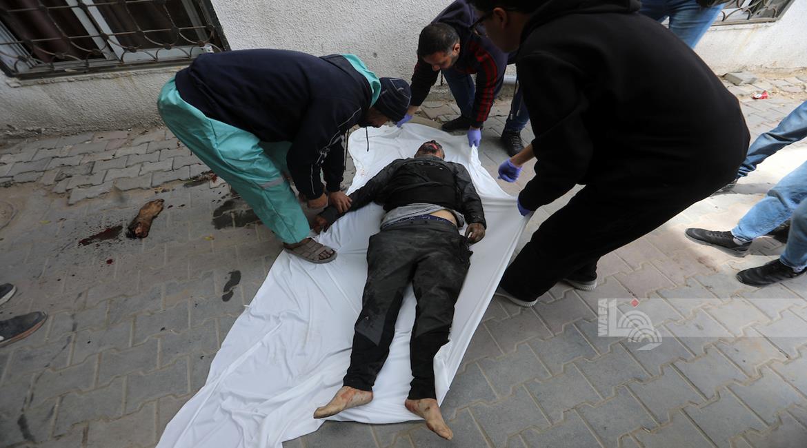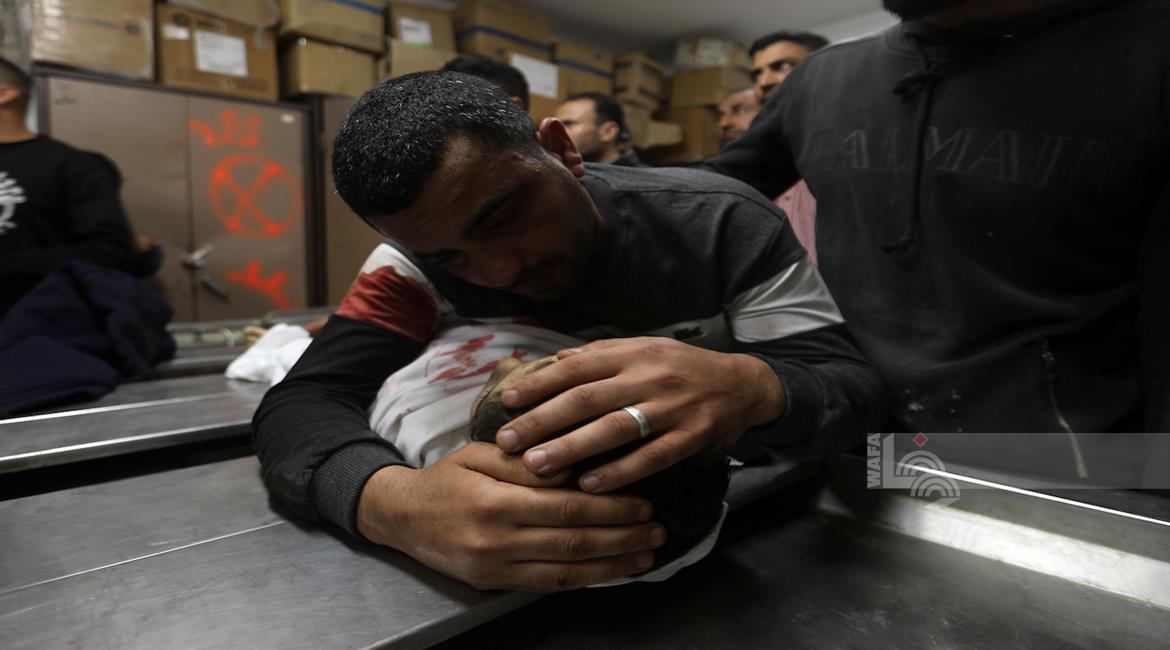 غزة - مواطنون يودّعون جثامين أربعة شهداء بينهم طفل في مستشفى الشفاء بمدينة غزة