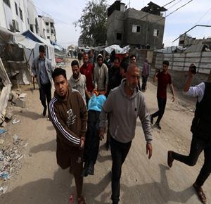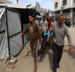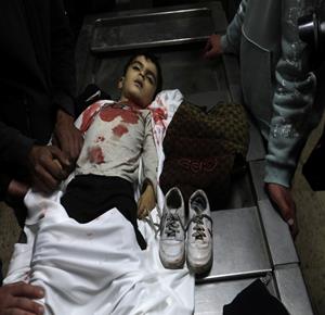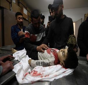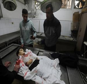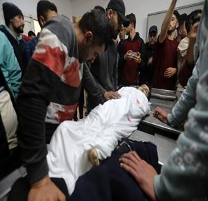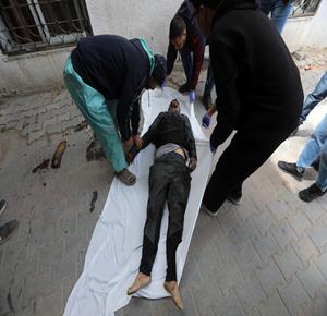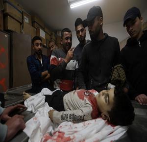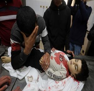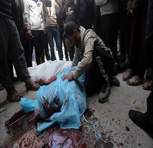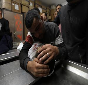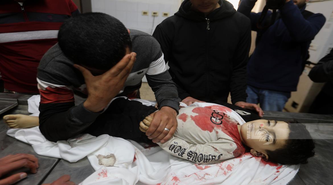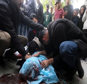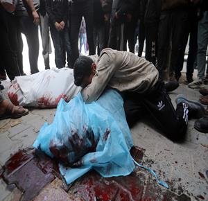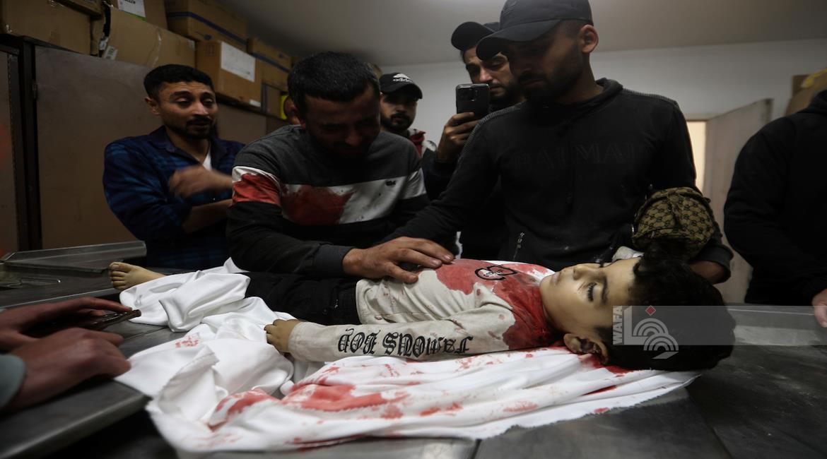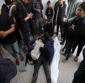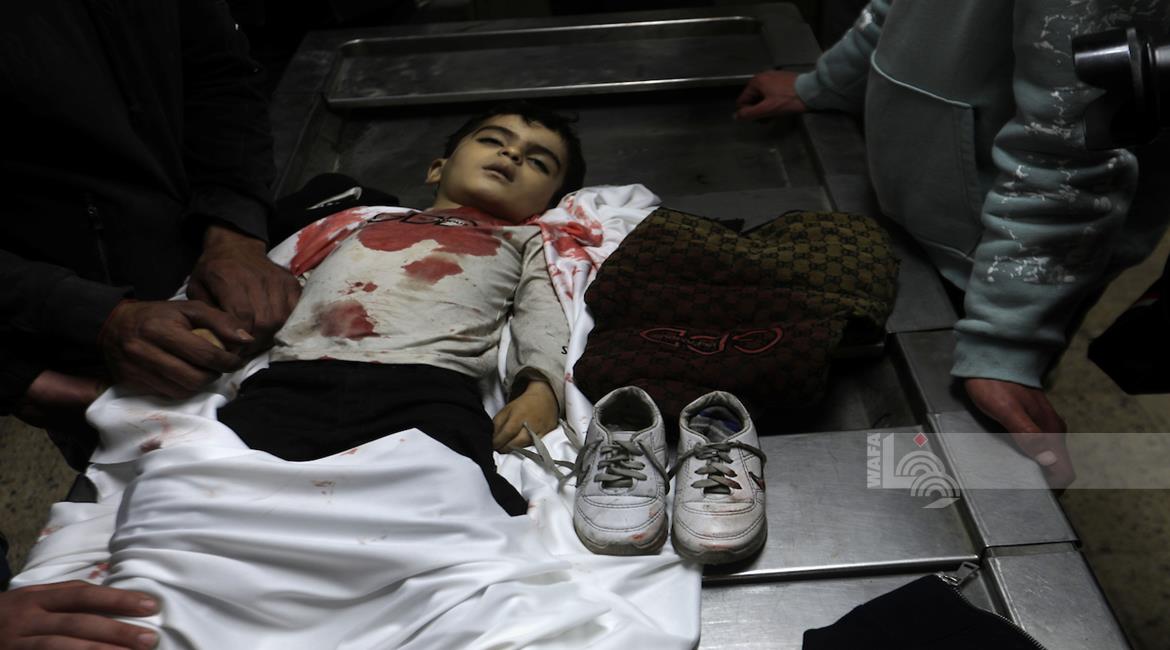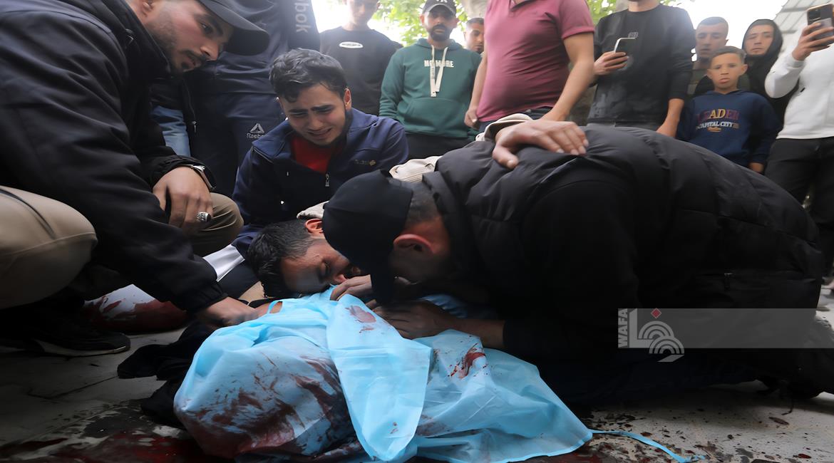 غزة - مواطنون يودّعون جثامين أربعة شهداء بينهم طفل في مستشفى الشفاء بمدينة غزة