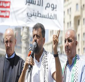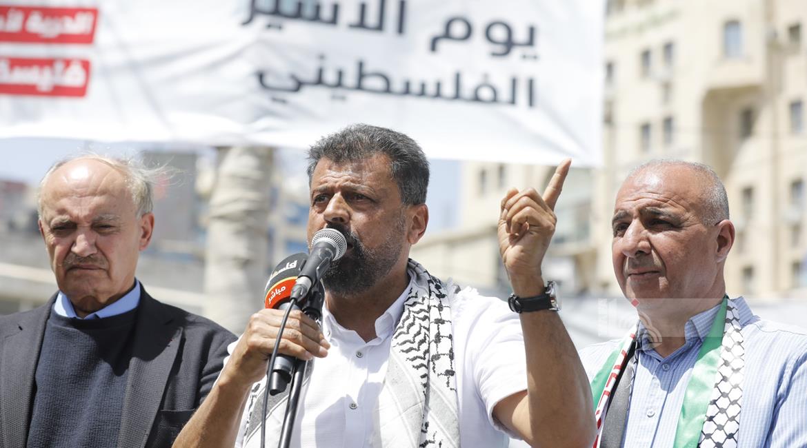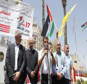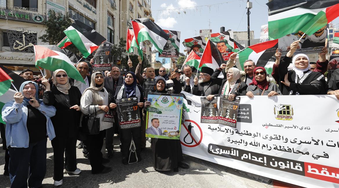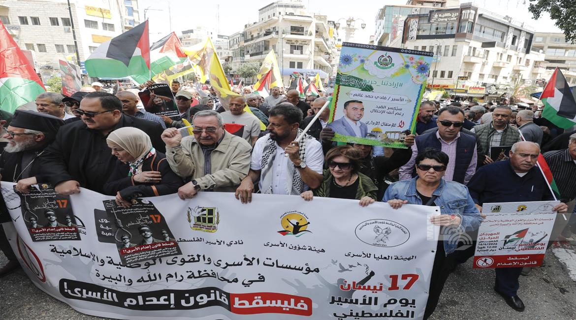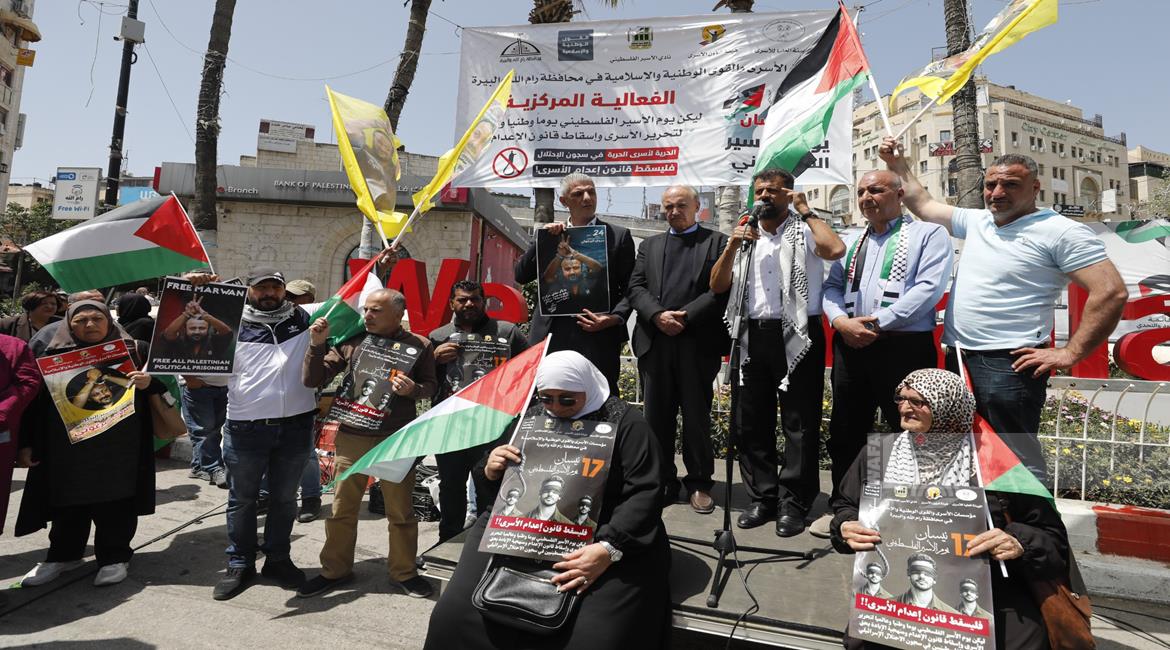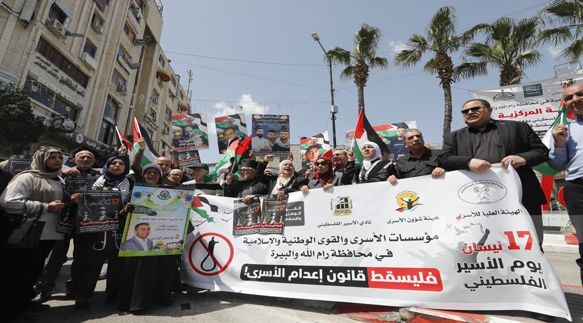 رام الله - مشاركون خلال الفعالية المركزية ليوم الأسير الفلسطيني على دوار المنارة