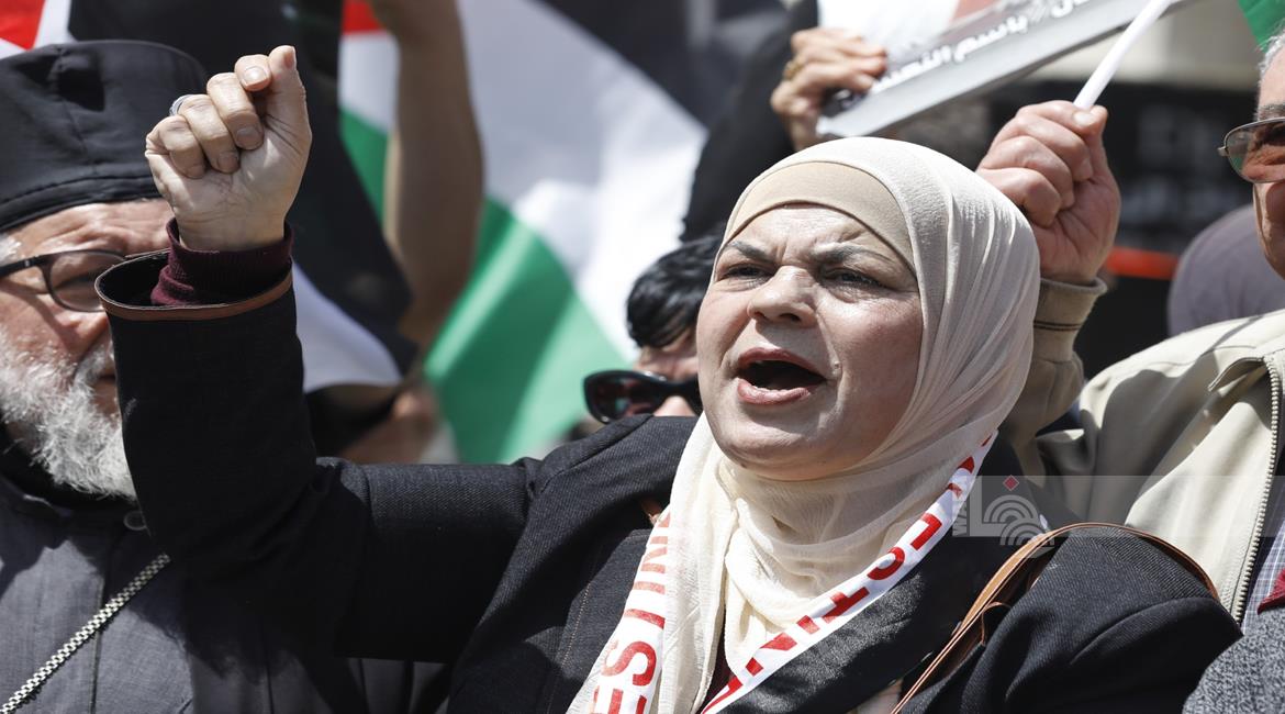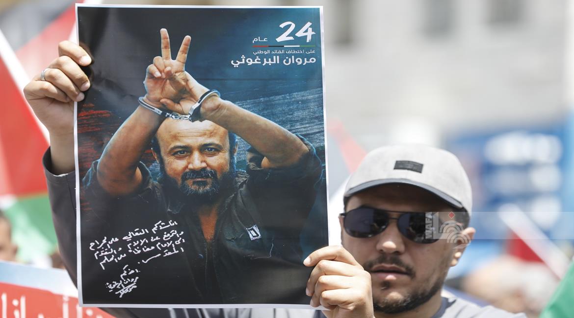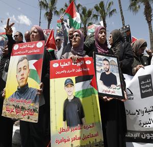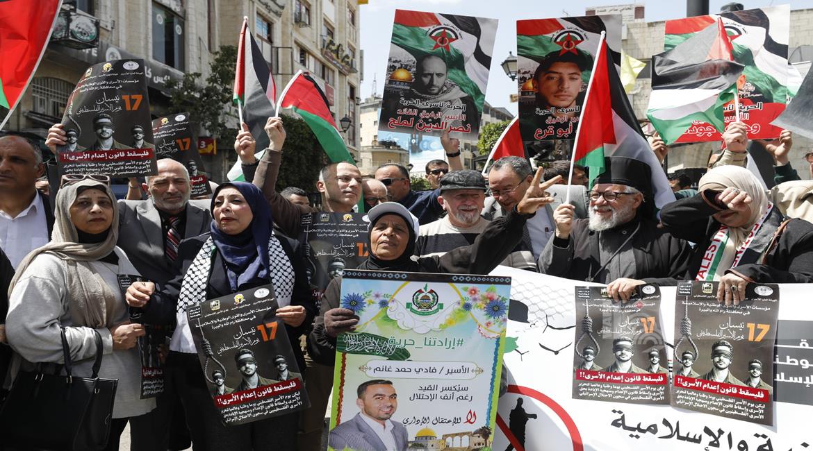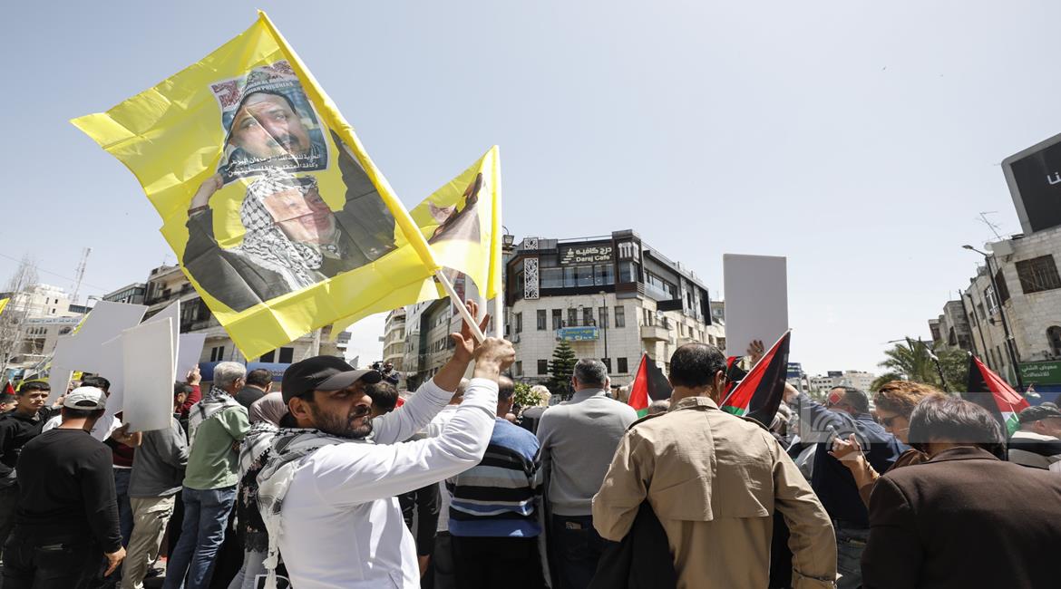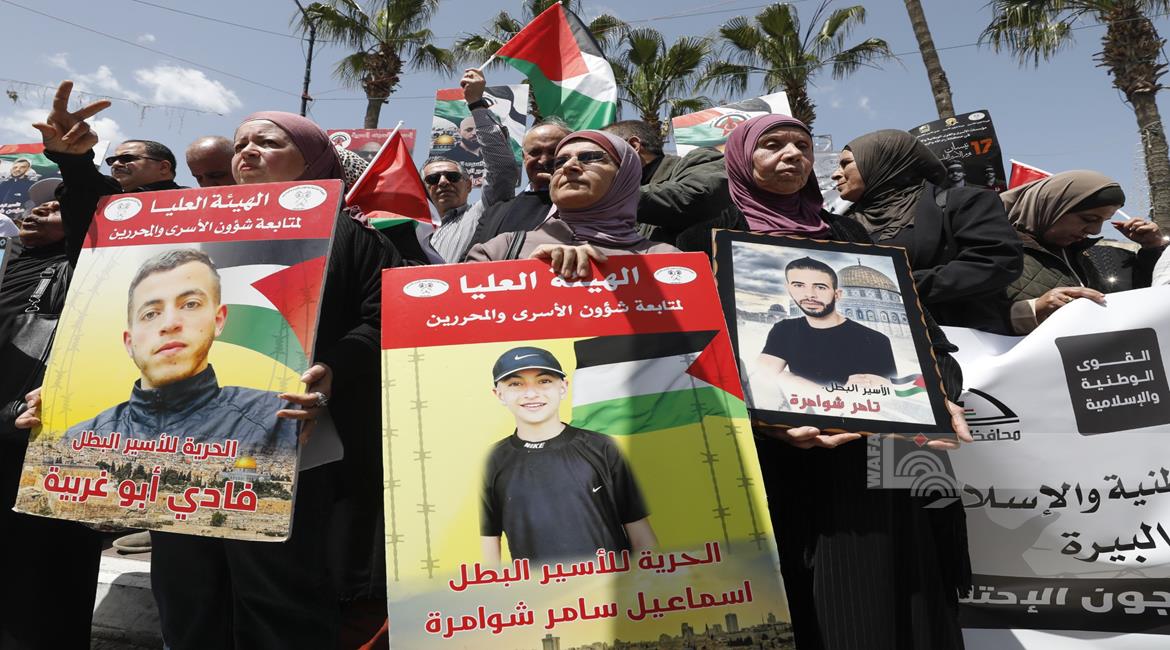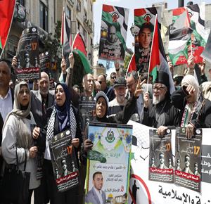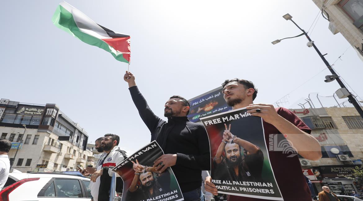 رام الله - مشاركون خلال الفعالية المركزية ليوم الأسير الفلسطيني على دوار المنارة