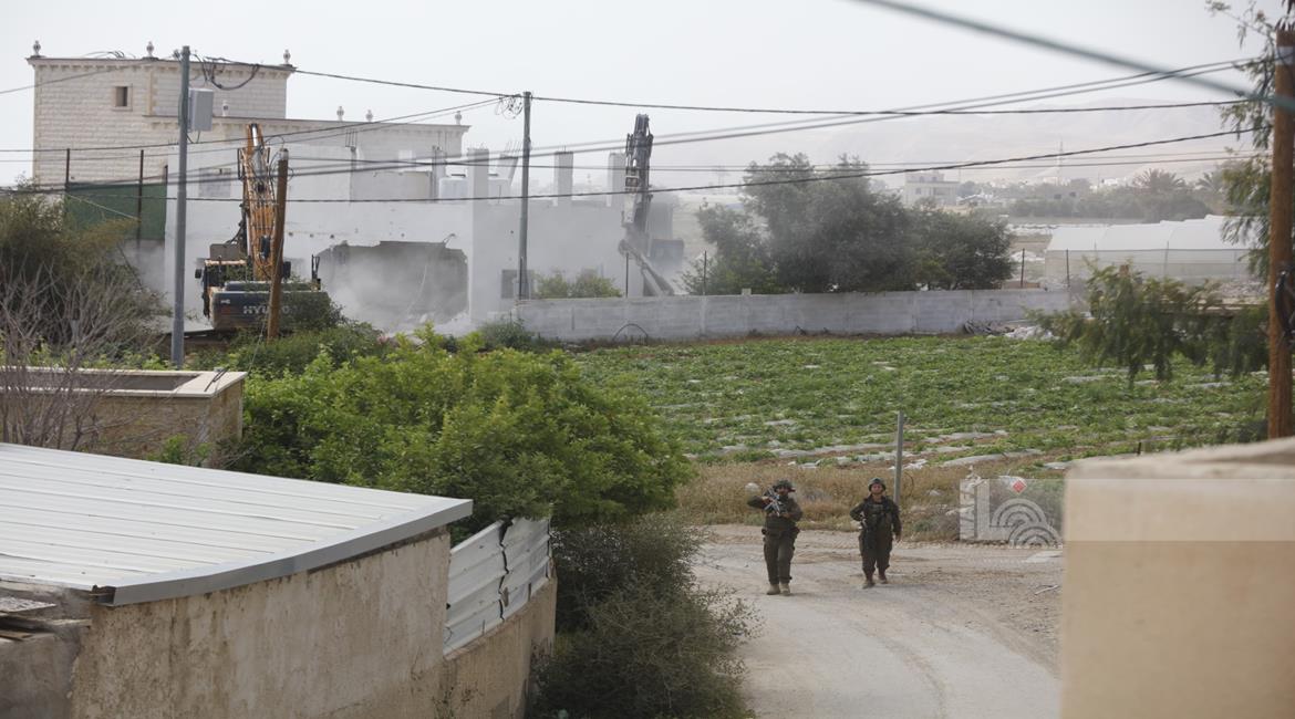 أريحا - جيش الاحتلال الاسرائيلي يهدم منزل المواطن سامر العيساوي في قرية الديوك التحتا غرب اريحا