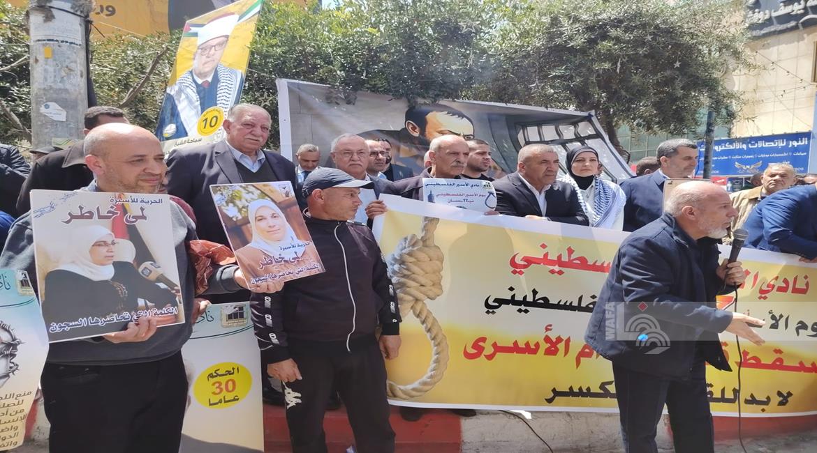 وقفة وسط مدينة طولكرم احياء ليوم الاسير ورفضا لقانون إعدام الاسرى في سجون الاحتلال