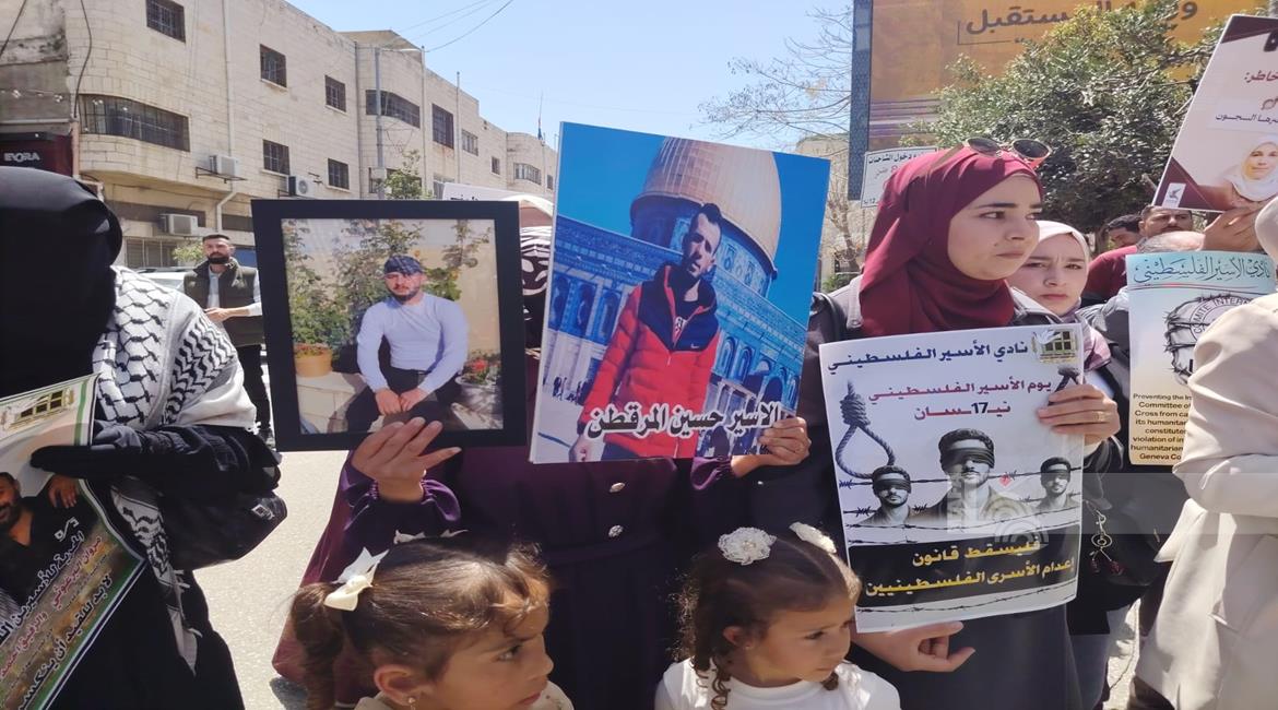 الخليل - وقفة في مدينة الخليل احياء ليوم الأسير ورفضا لقانون إعدام الاسرى في سجون الاحتلال.(عدسة: شادية سلطان/وفا)