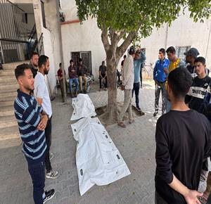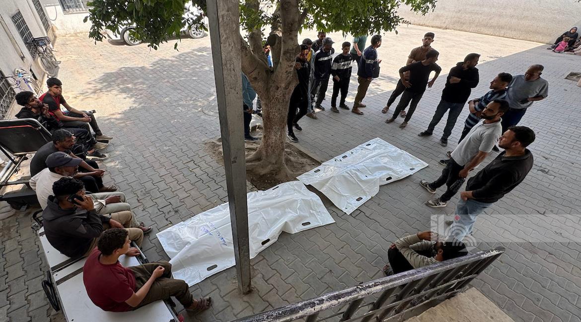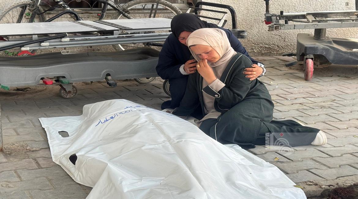 وداع شهيدين في مستشفى ناصر في خان يونس ارتقيا بعد استهدافهما بنيران الاحتلال الإسرائيلي في جنوب قطاع غزة