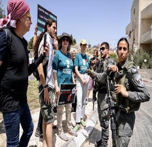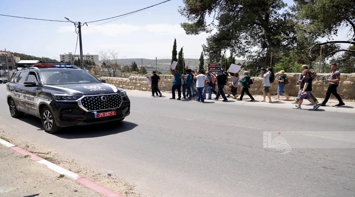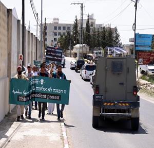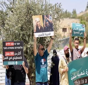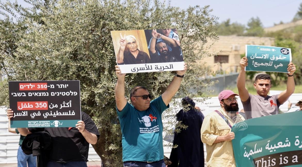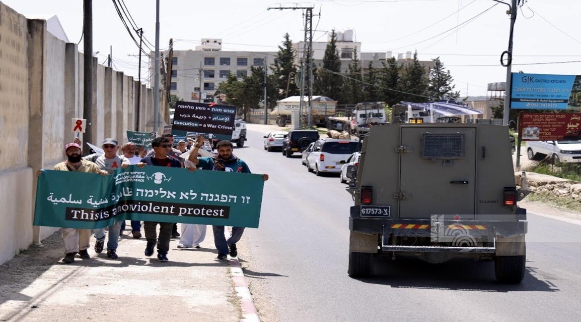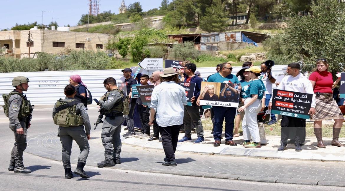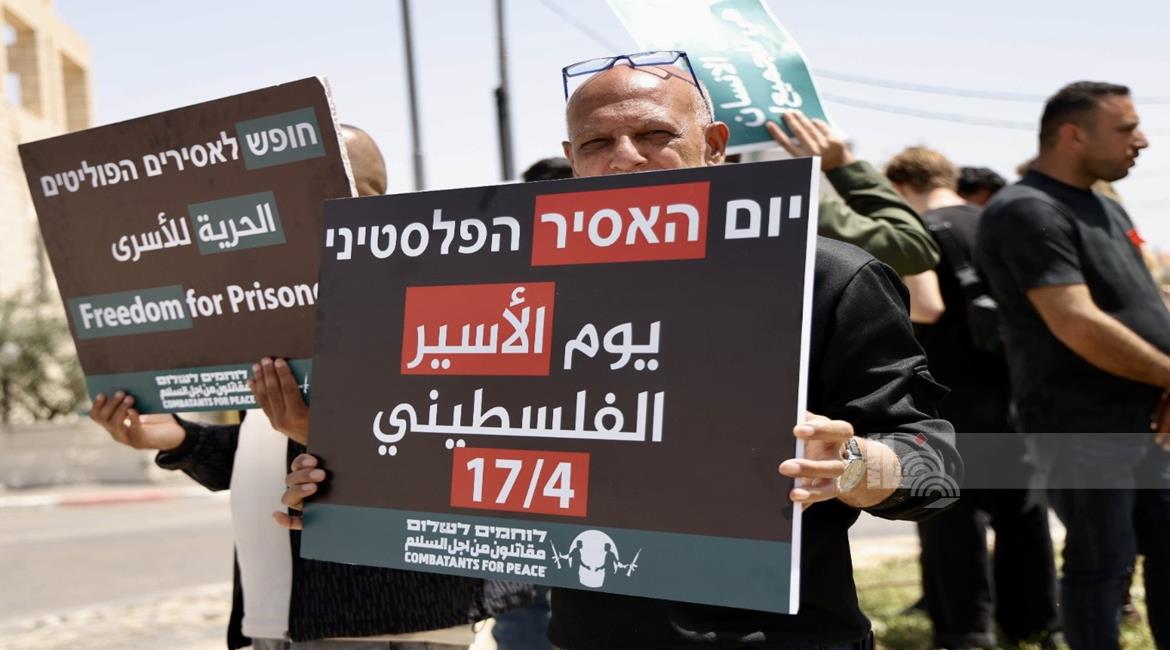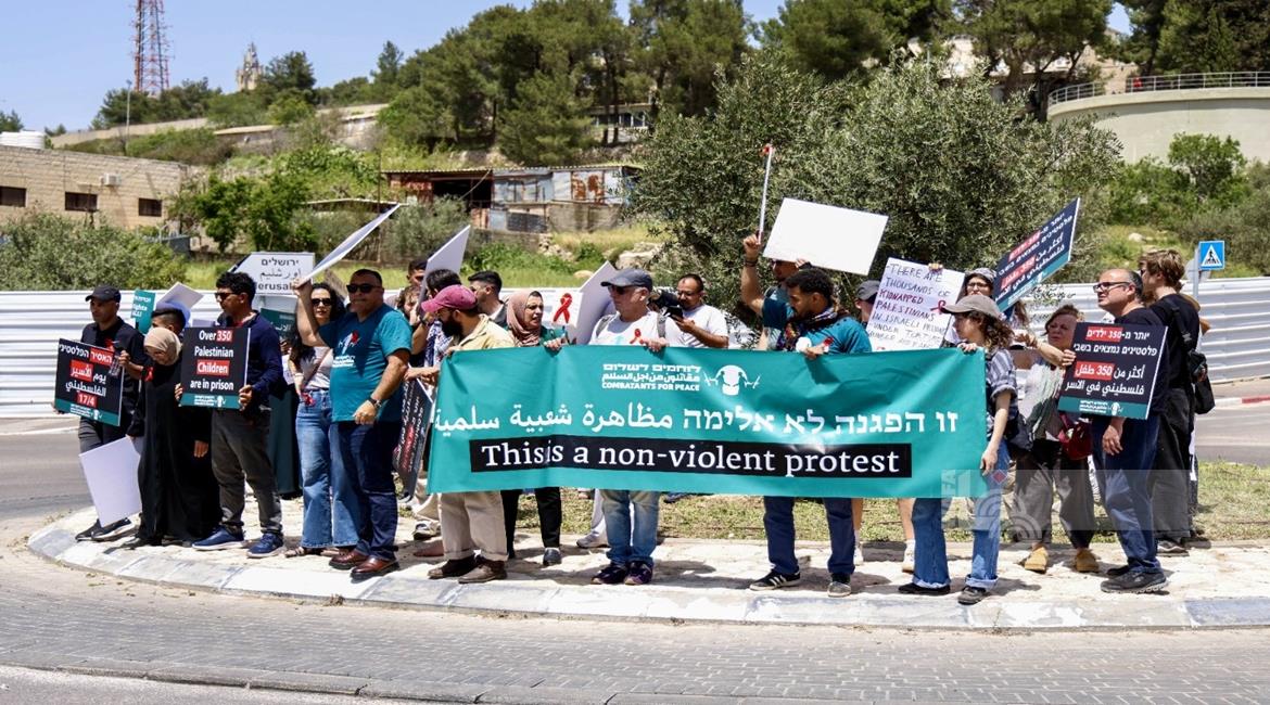 بيت لحم - مسيرة نظمتها حركة "مقاتلون من أجل السلام" دعماً للأسرى الفلسطينيين في سجون الاحتلال، عند المدخل الشمالي لمدينة بيت جالا،