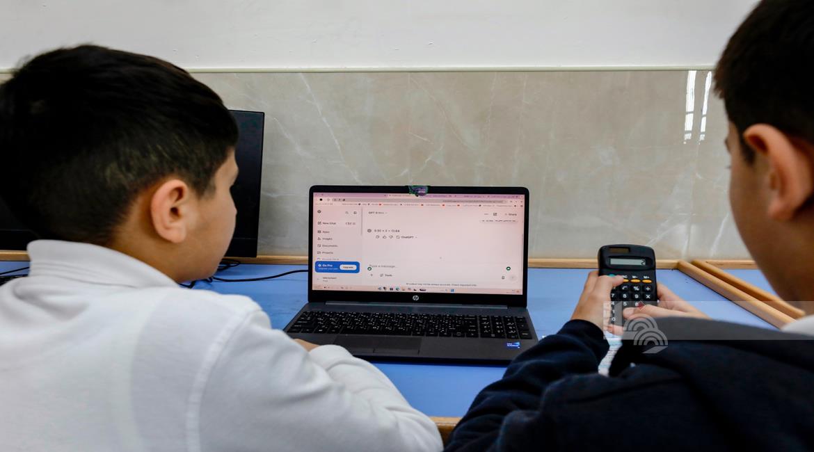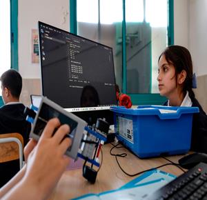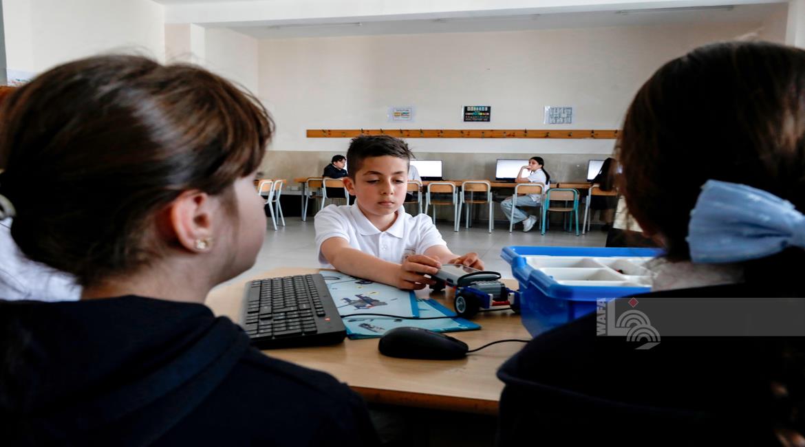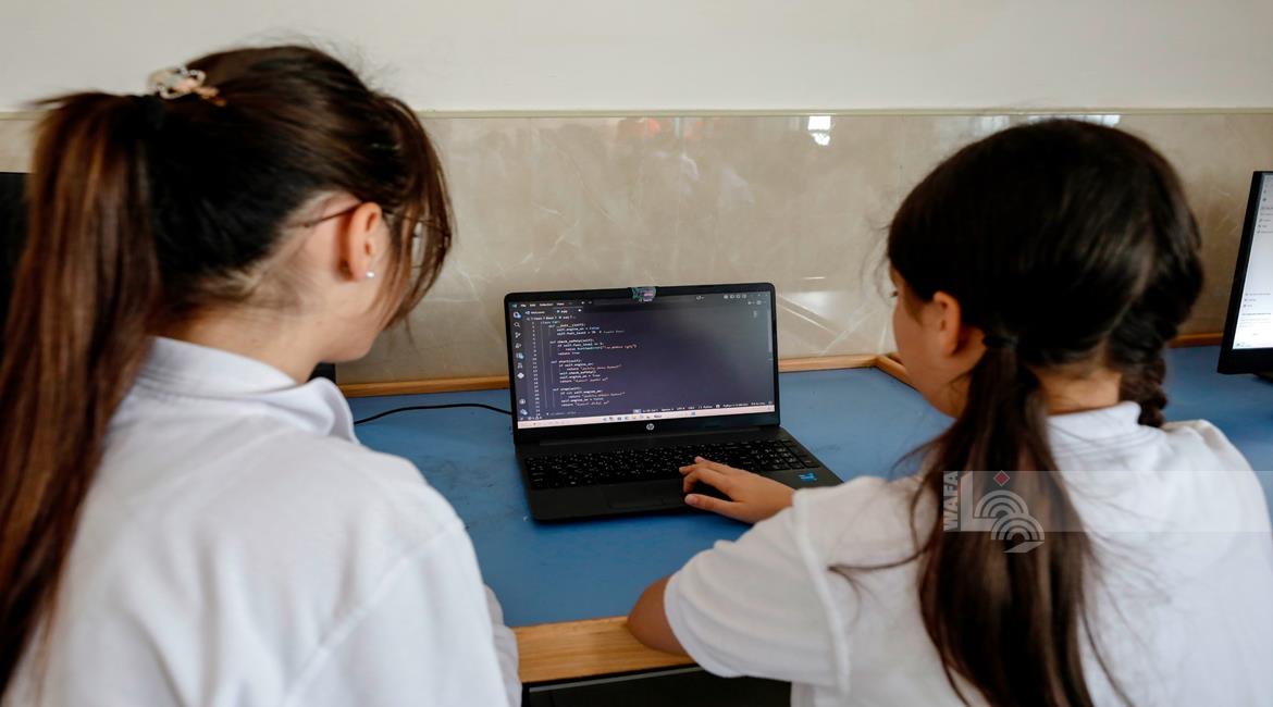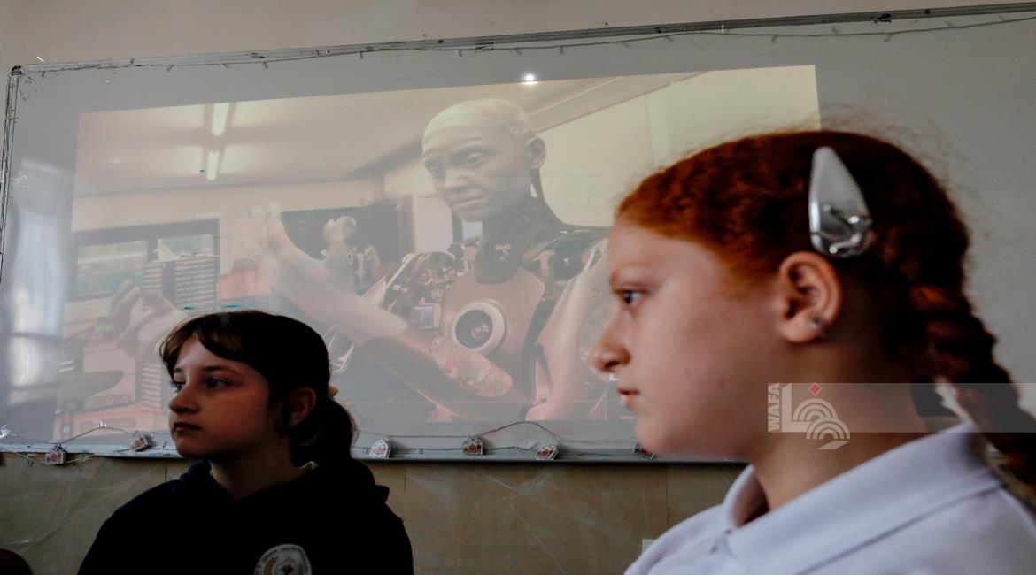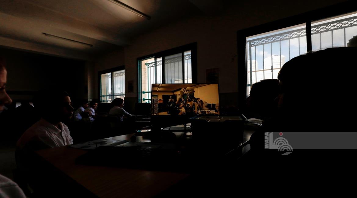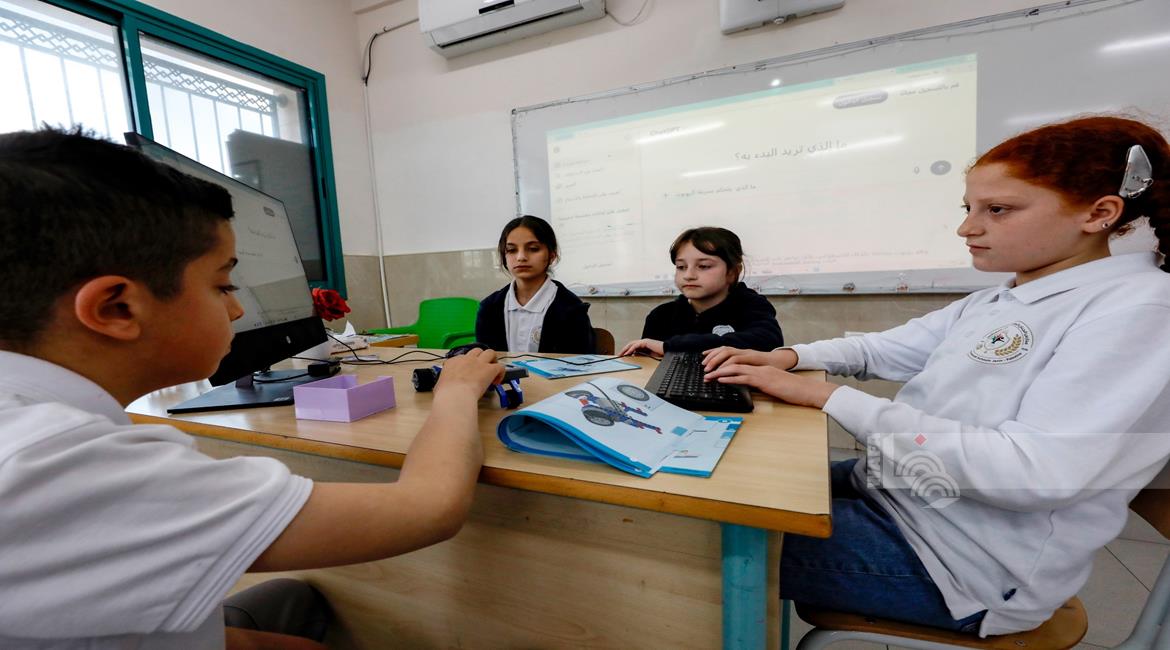 جنين - طلاب اثناء تعلمهم استخدام الذكاء الاصطناعي في العمليات الحسابية والتحكم في "روبوت" آلي